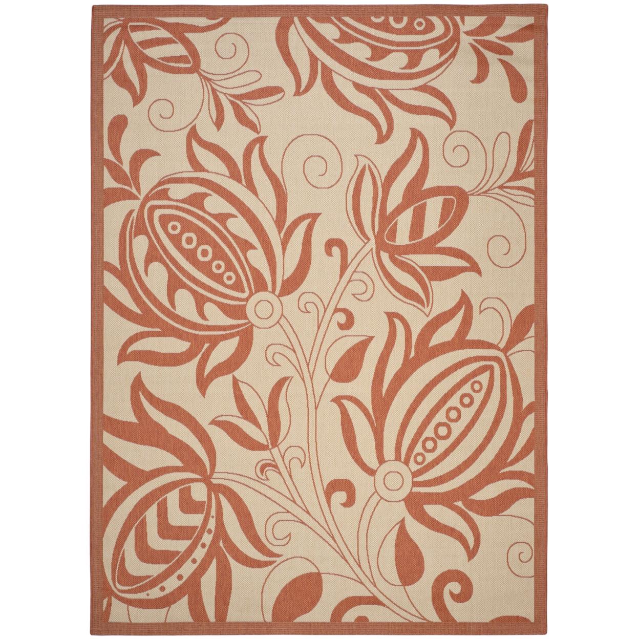 Safavieh Courtyard Crystal Floral Indoor/Outdoor Indoor/Outdoor Area Rug, 9′ x 12′, Natural/Terracotta