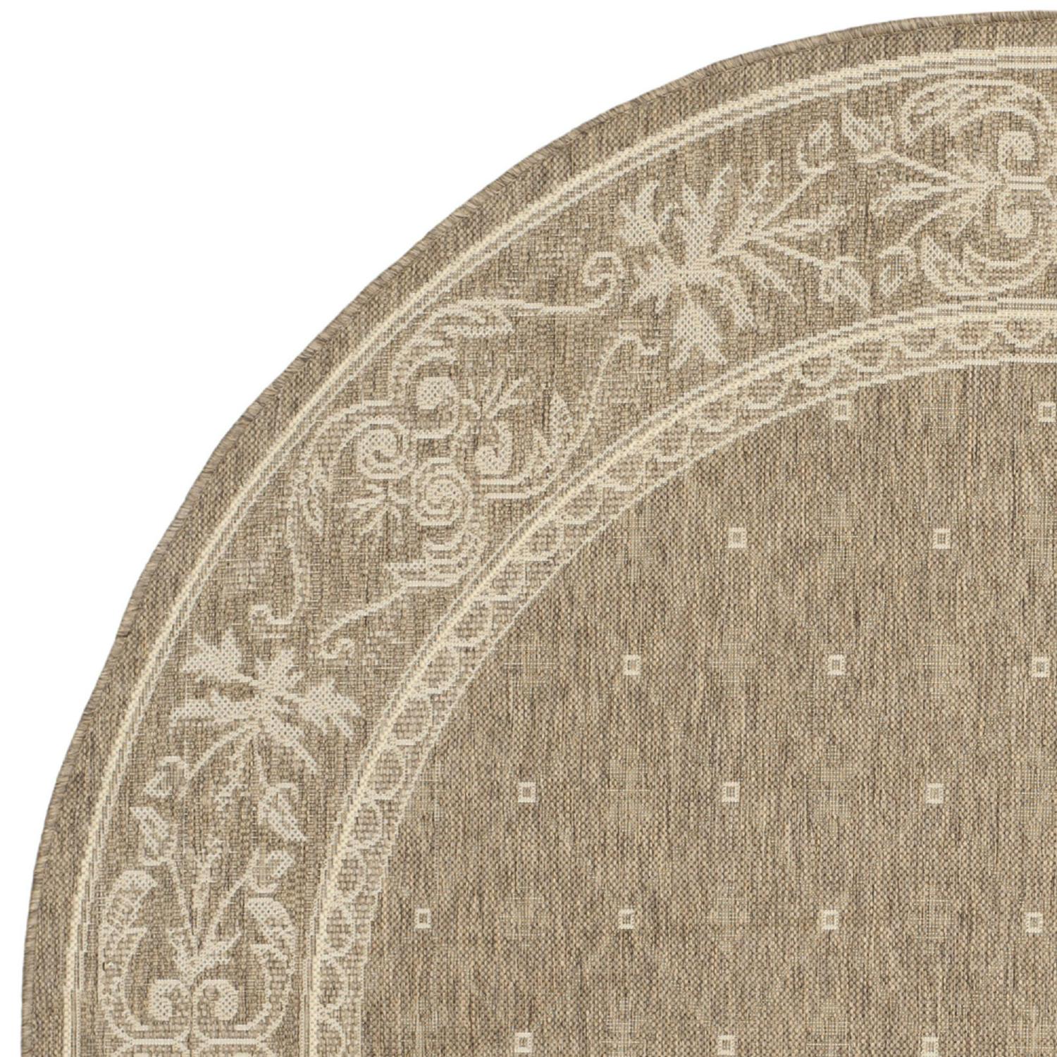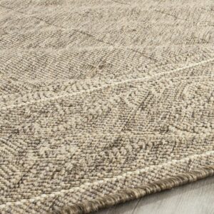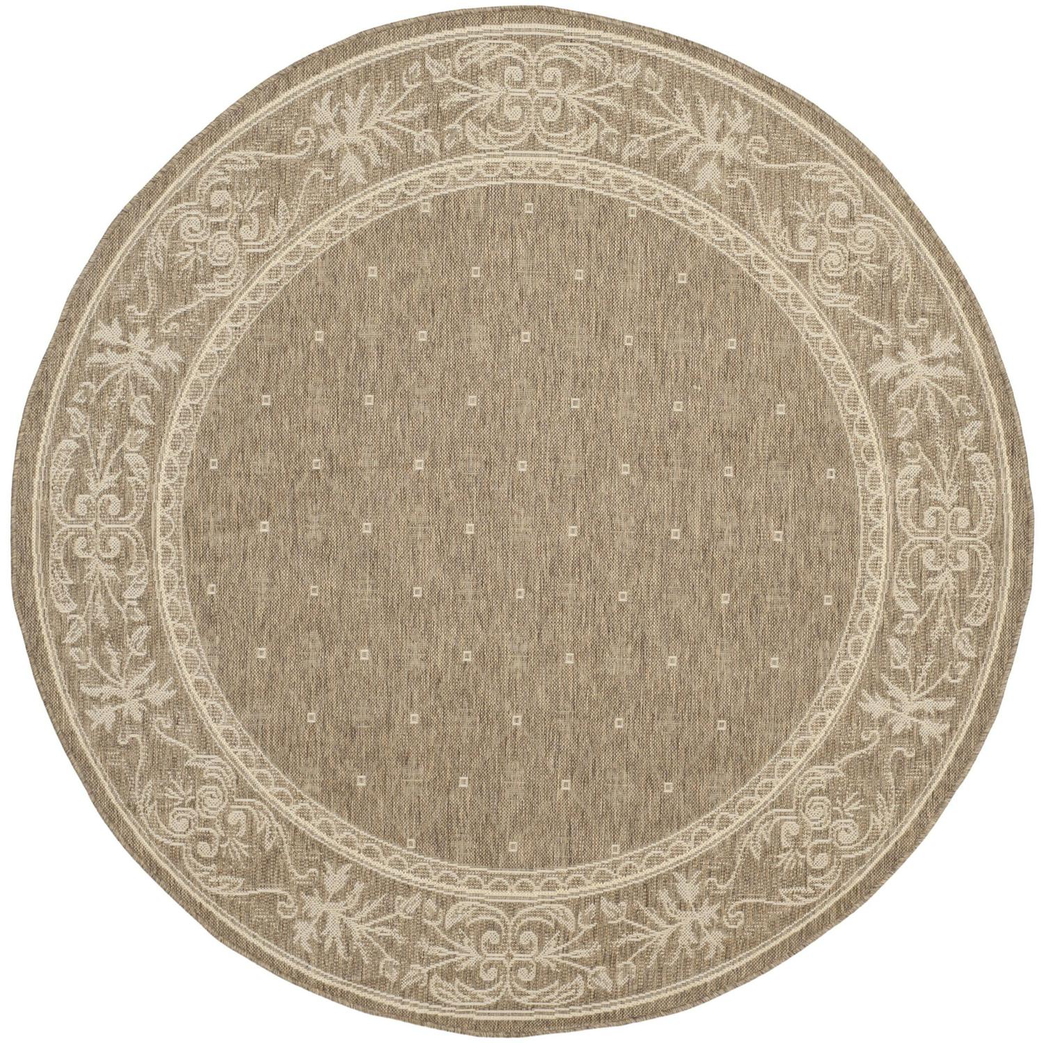 SAFAVIEH Courtyard Derek Geometric Indoor/Outdoor Area Rug, 5’3 x 5’3 Round, Brown/Natural