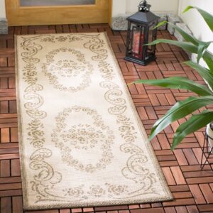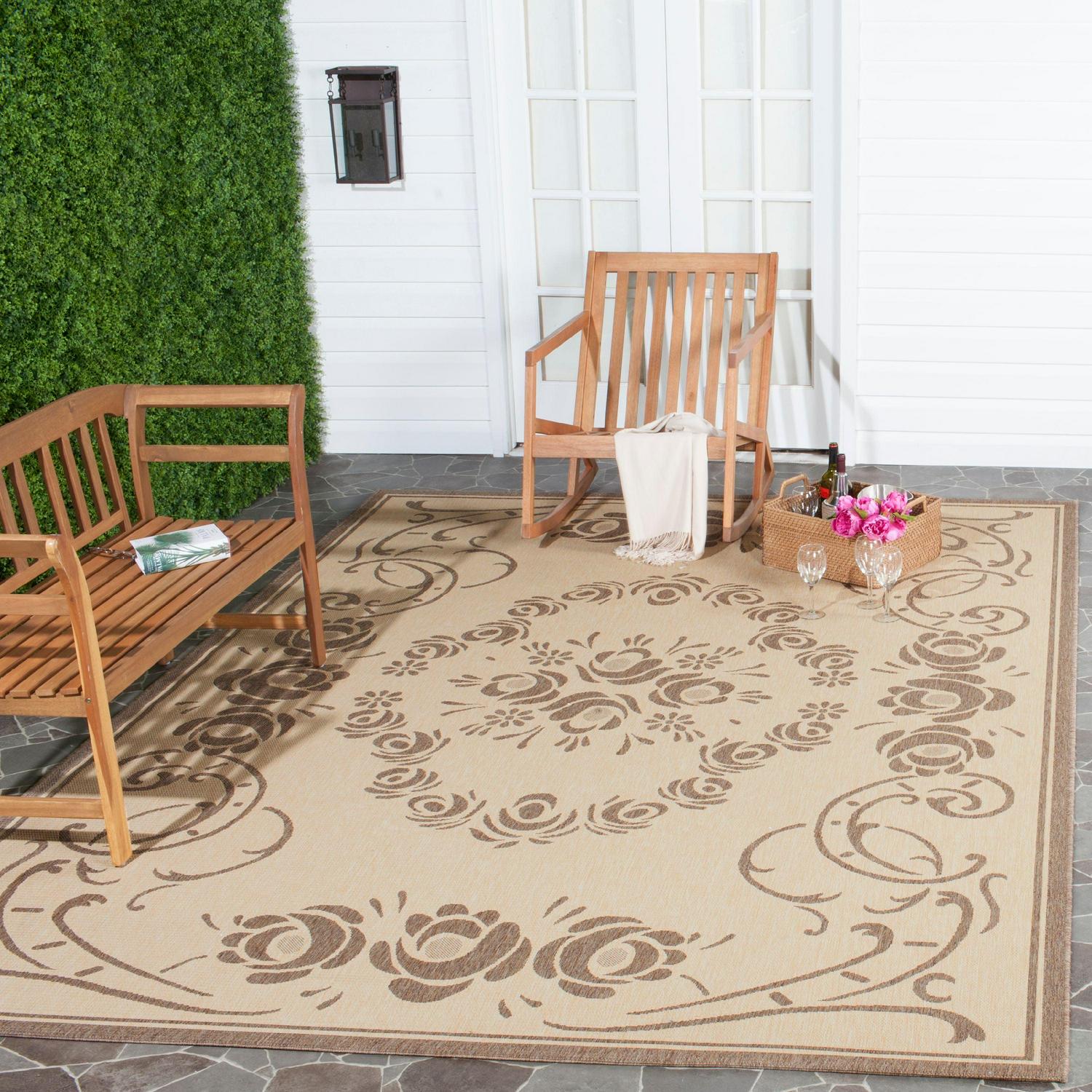 SAFAVIEH Courtyard Elena Traditional Floral Indoor/Outdoor Area Rug, 5’3 x 7’7 , Natural/Brown