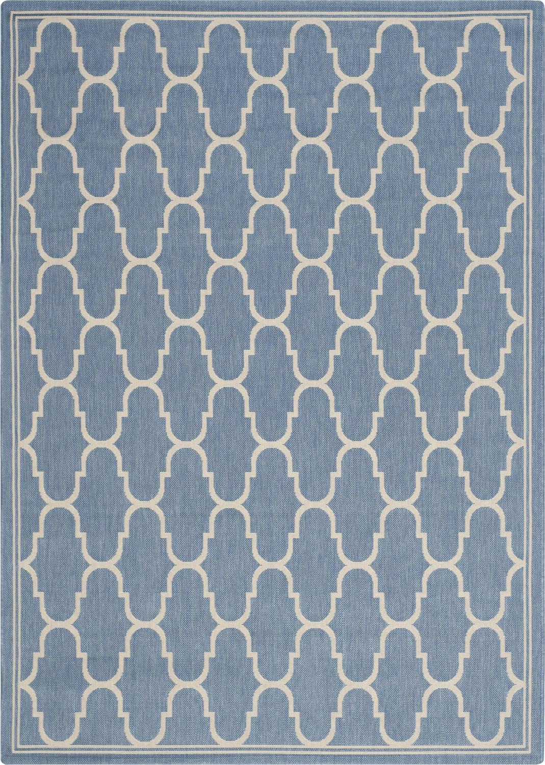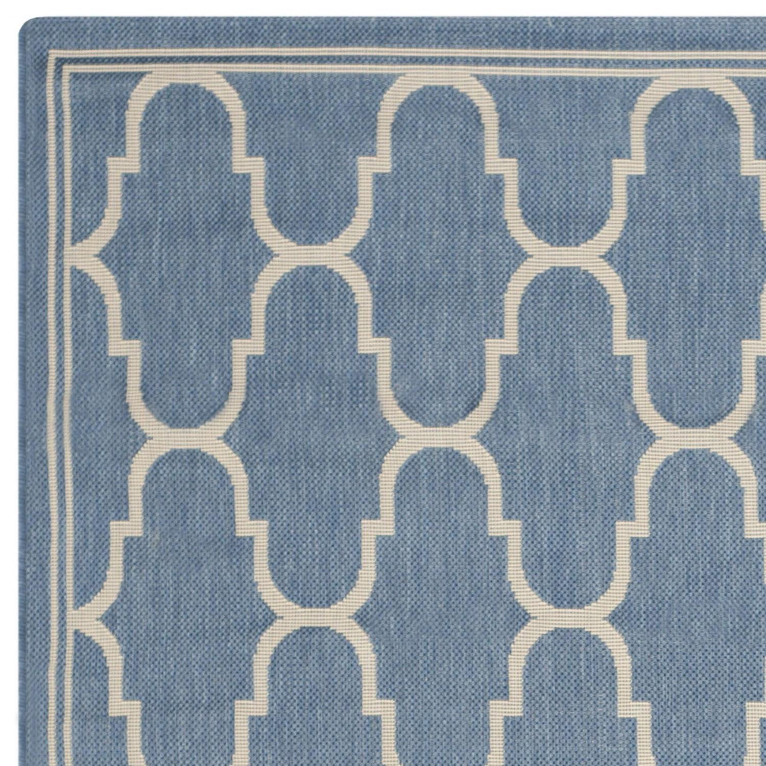 SAFAVIEH Courtyard Eustacia Geometric Trellis Indoor/Outdoor Area Rug Blue/Beige, 6’7 x 9’6