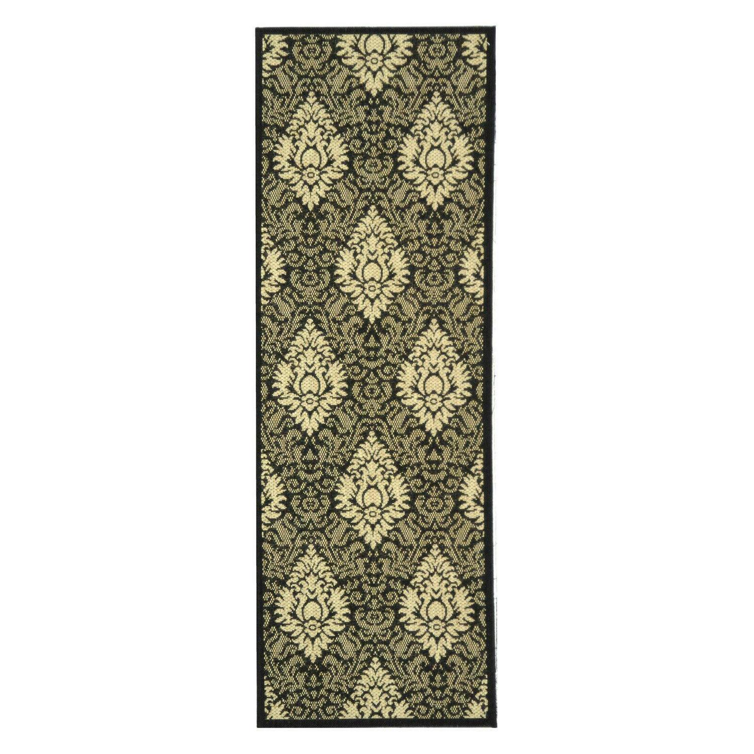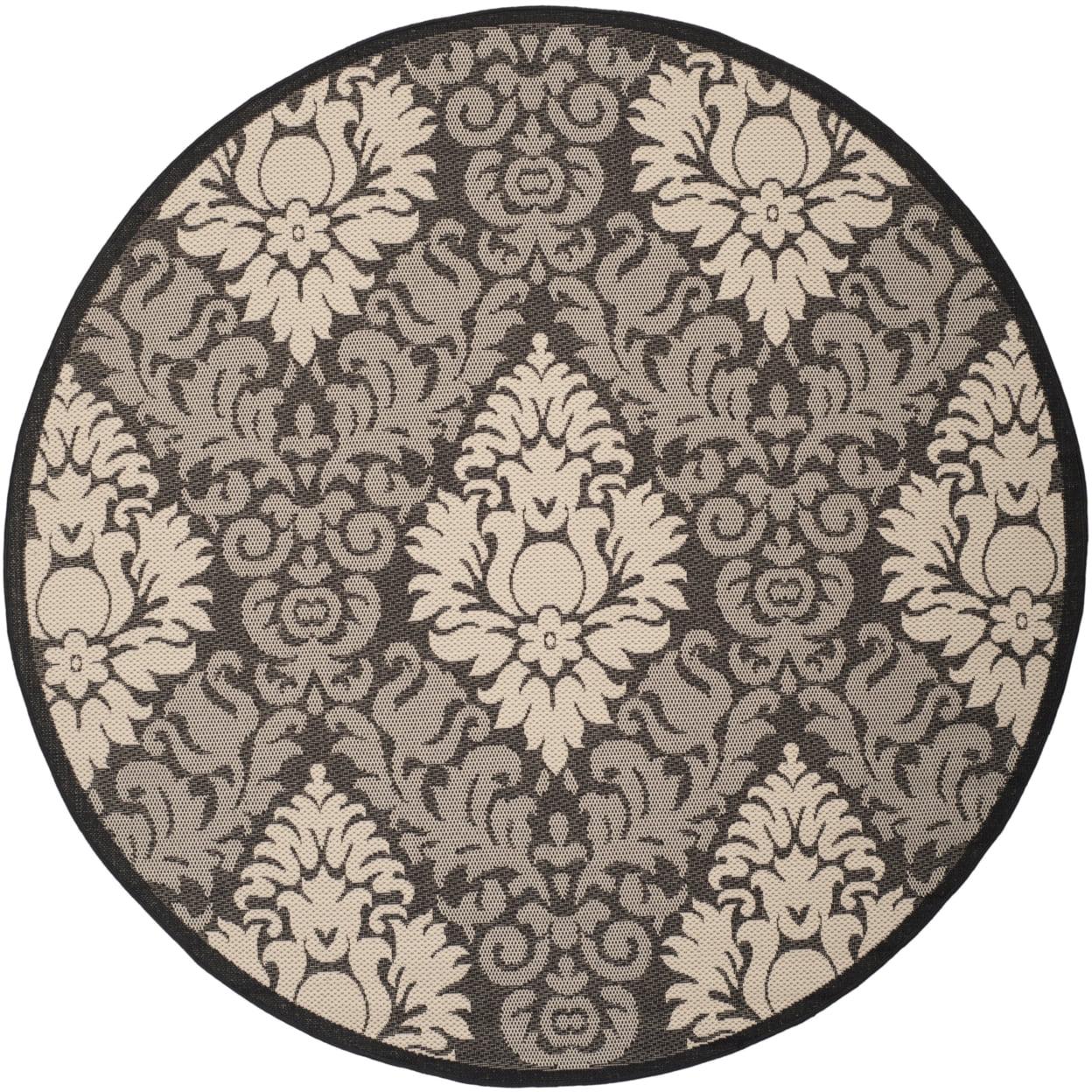 Safavieh Courtyard Jessie Damask Outdoor Indoor/Outdoor Area Rug, 6’7 x 6’7 Round, Black/Sand