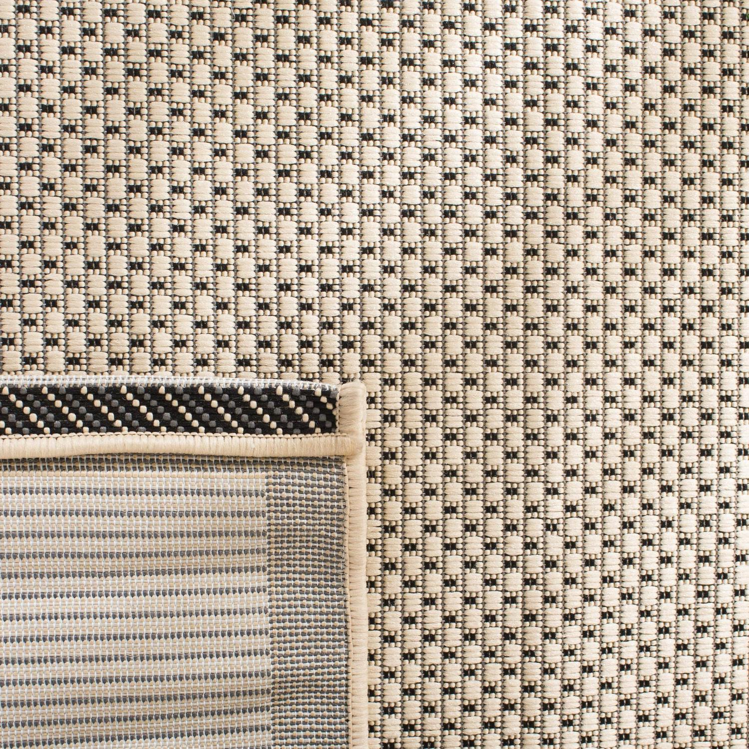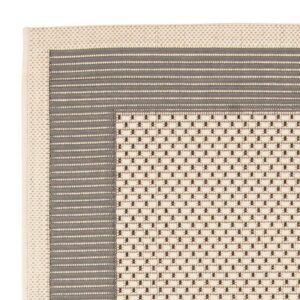 SAFAVIEH Courtyard Justine Striped Border Indoor/Outdoor Runner Rug, Grey/Cream, 2’3 x 20′
