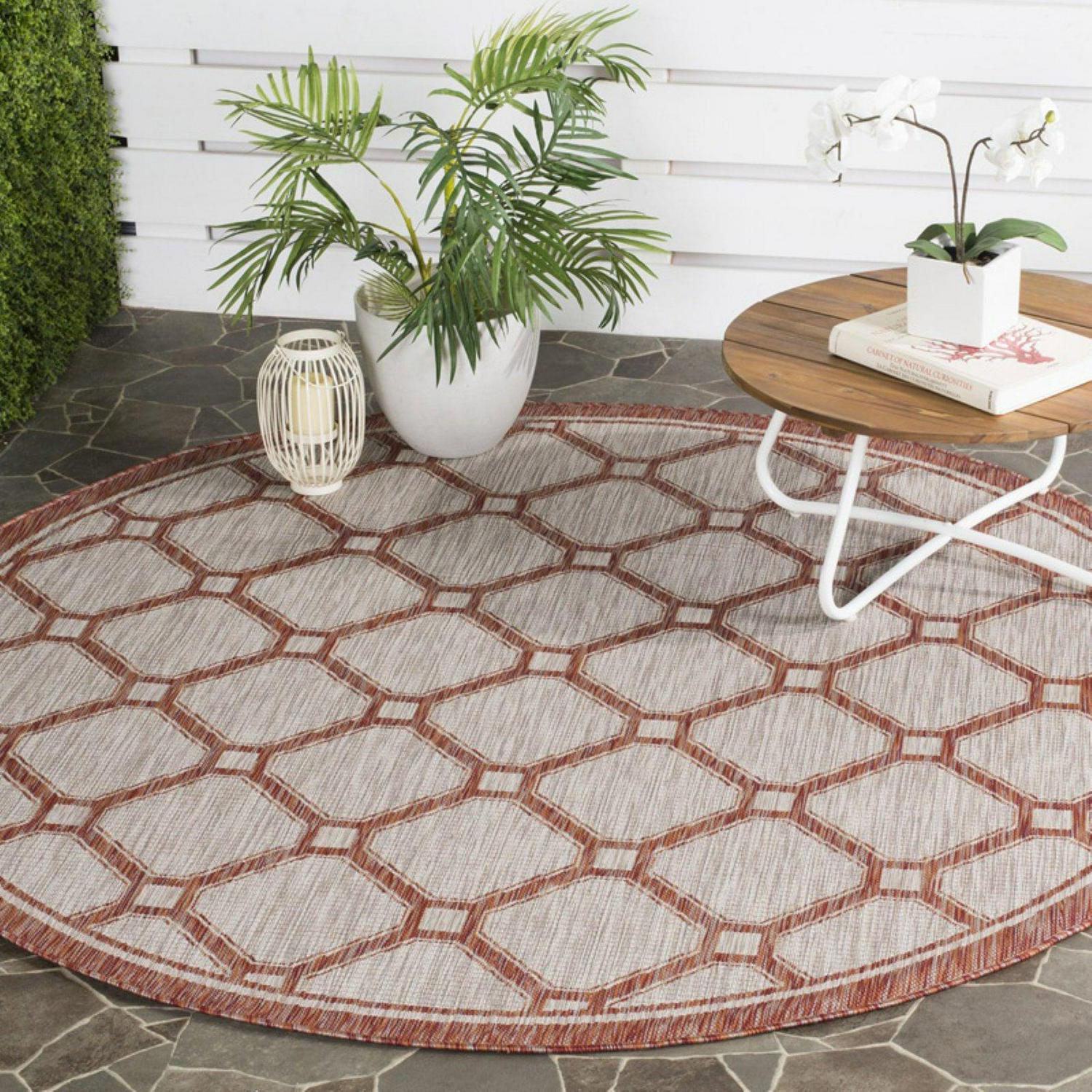 Safavieh s Courtyard collection was created for today s indoor/outdoor lifestyle. These beautiful but practical rugs take outdoor decorating to the next level with new designs in fashion-forward colors, and patterns from classic to contemporary. Made with enhanced material for extra durability, Courtyard rugs are pre-coordinated to work together in related spaces inside or outside the home. Safavieh developed a special sisal weave that achieves intricate designs that are so easy to maintain, you simply clean your rug with a garden hose.