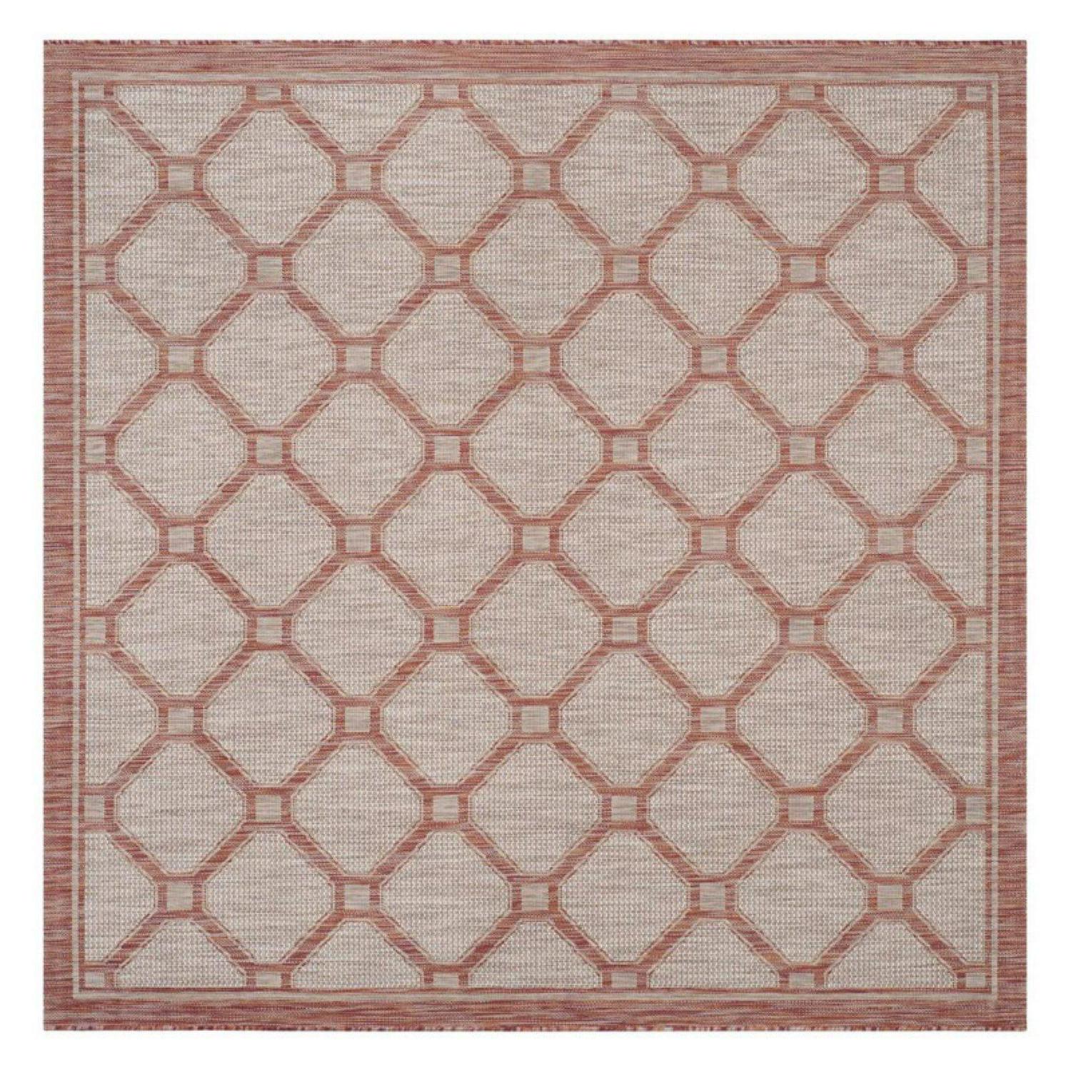 SAFAVIEH Courtyard Maksim Geometric Bordered Indoor/Outdoor Area Rug, 6’7 x 9’6 , Red/Beige