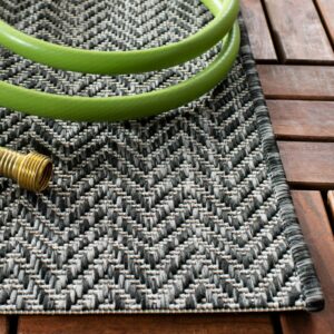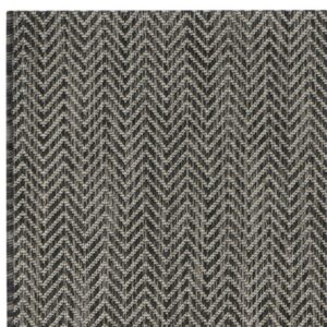 SAFAVIEH Courtyard Morven Chevron Stripes Indoor/Outdoor Runner, 2’3 x 22′, Black/Beige