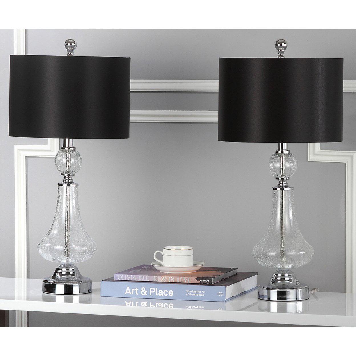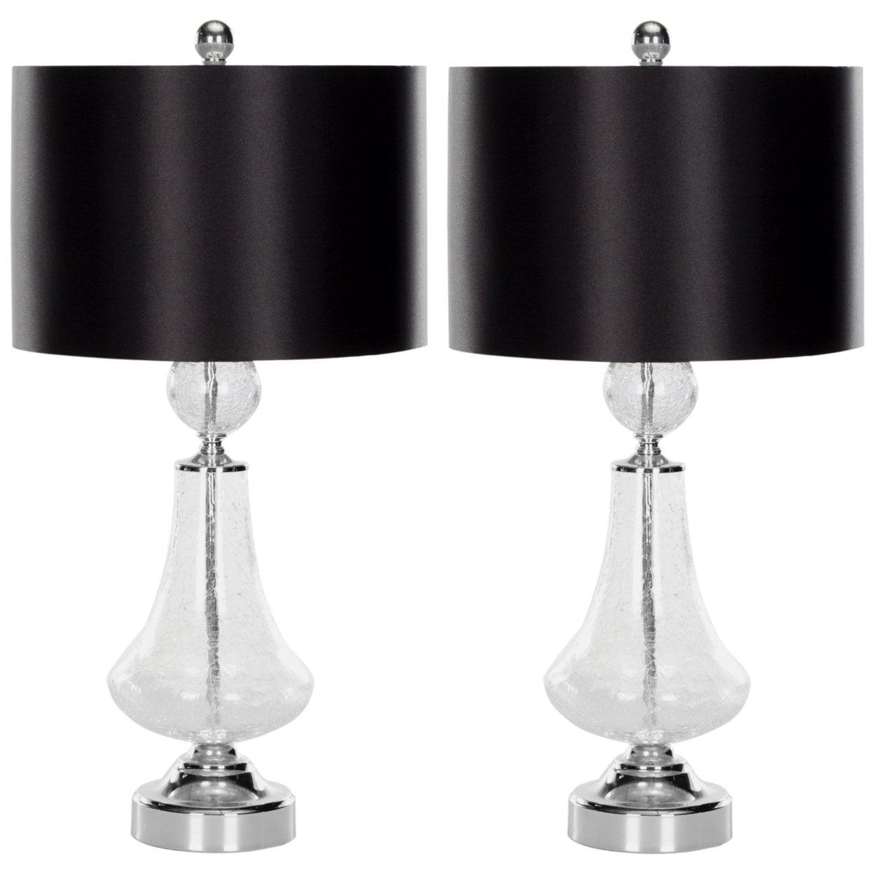 SAFAVIEH Crackle Lamp (Set of 2) | Clear | A celebration of Old Hollywood style, this Mercury Lamp (set of two) brims with lavish elegance. Mercury is topped with a sleek black shade, and its clear crackle glass and silver finial makes this set of two lamps the belle of the ball. Begin your rug, furniture, lighting, outdoor, and home decor search and discover over 100,000 SAFAVIEH products today.