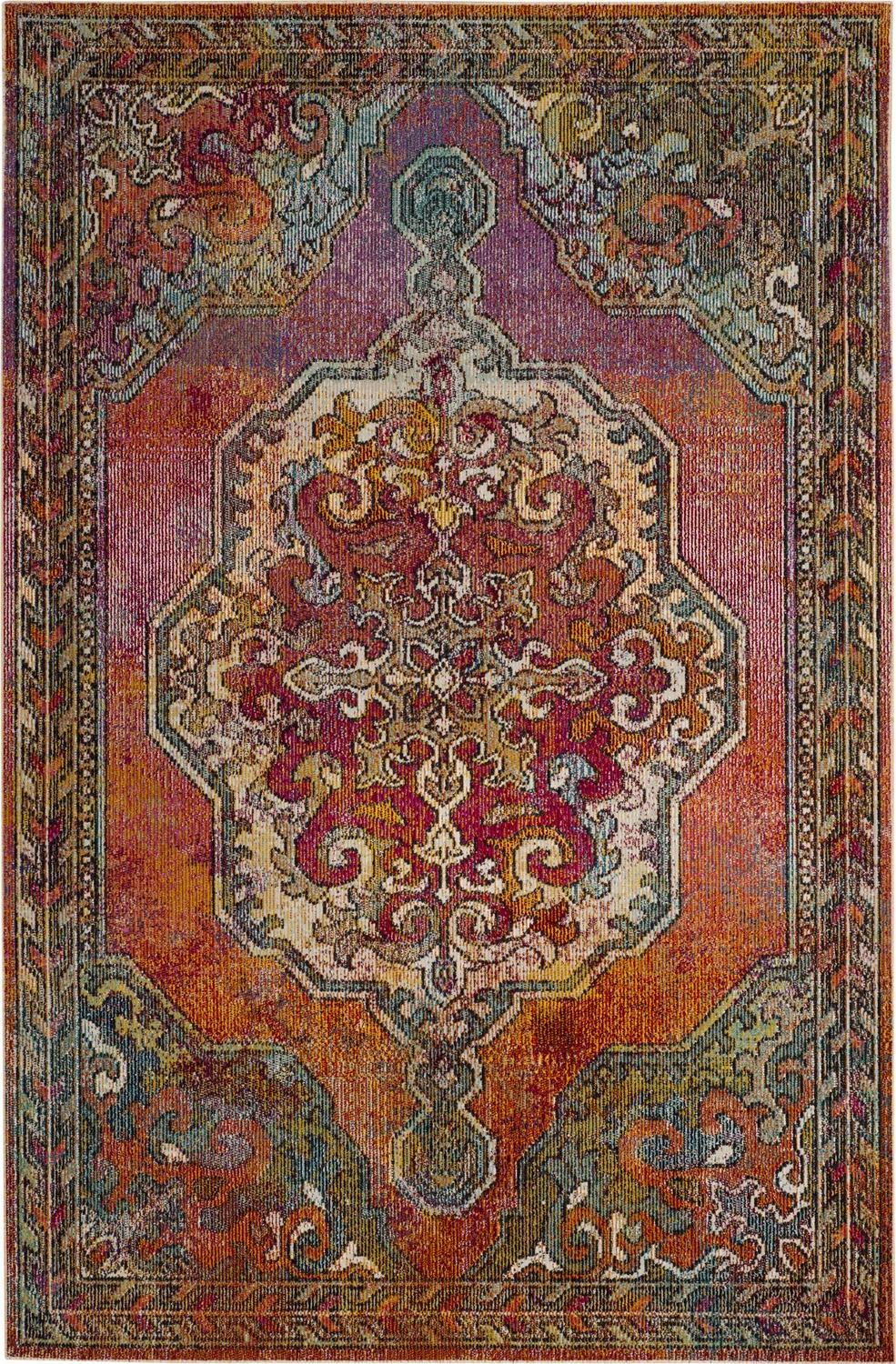Crystal Rug Collection. Fashion Forward Transitional Rugs. This close cut pile area rug from the Crystal Collection by Safavieh is power loomed using synthetic yarns for an intricate and finely detailed design. These rugs portray a timeless look of the old world motifs with floral medallions in a new vivid, colorful way. Fashion-forward colors and ageless artistry make this floor covering a decor-smart choice for any transitional living room or dining room.