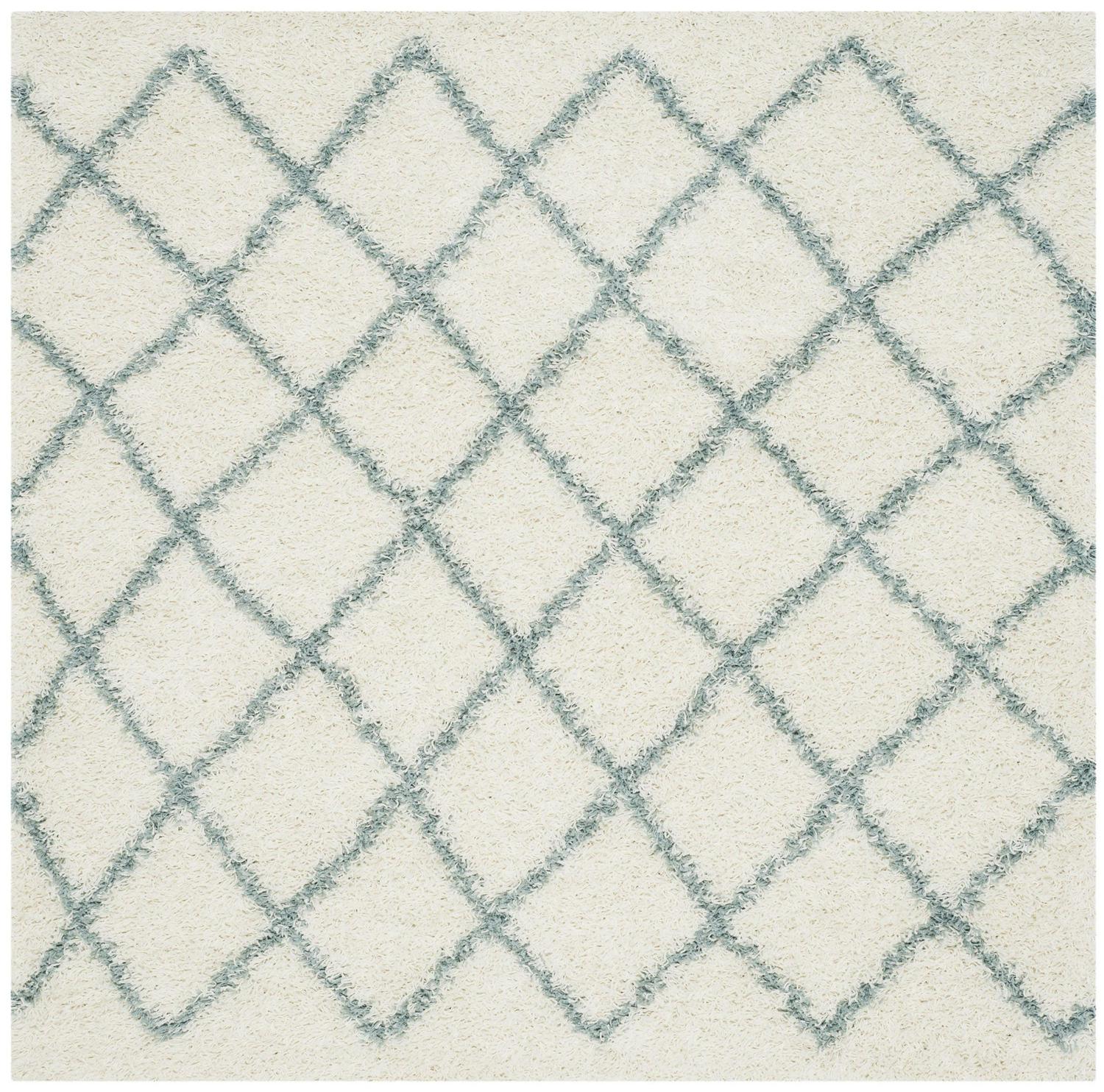 SAFAVIEH Dallas Jerrie Geometric Shag Area Rug, Ivory/Seafoam, 6′ x 6′ Square
