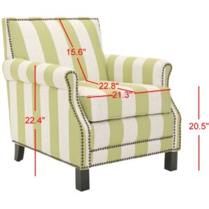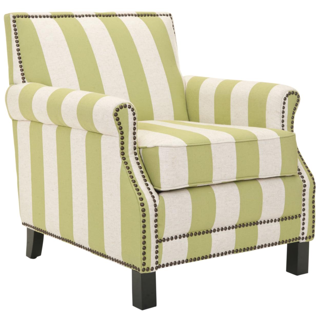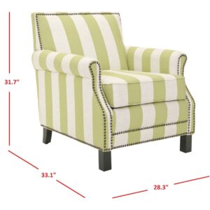 SAFAVIEH Easton Club Chair With Stripes Brass Nail Head Green / White