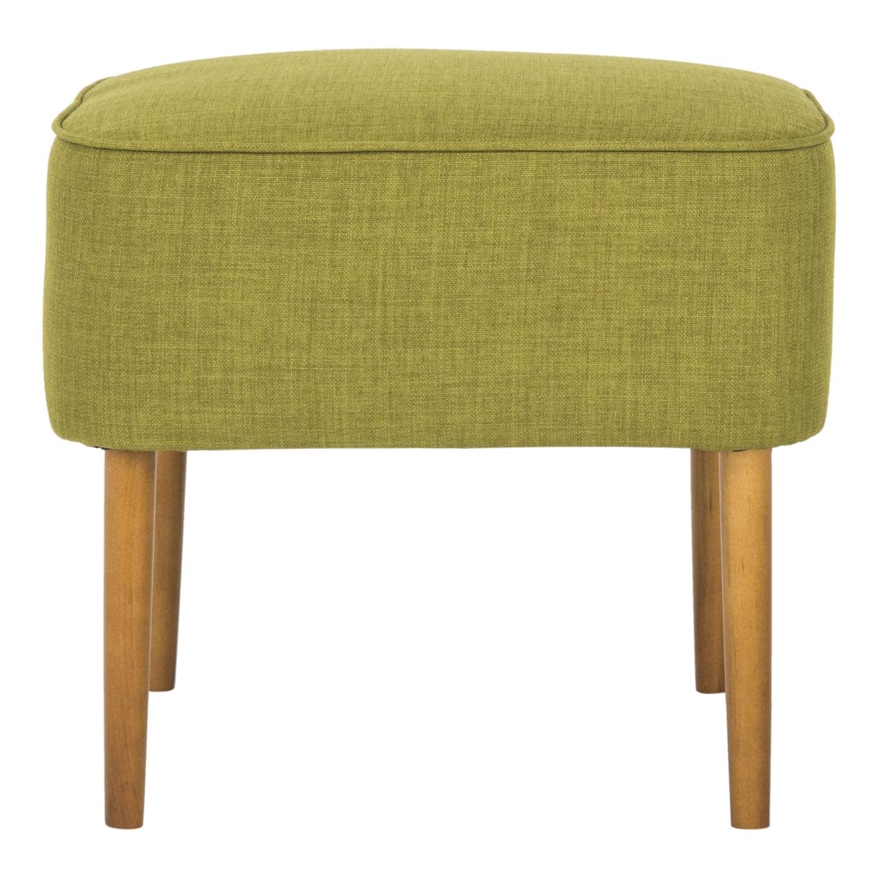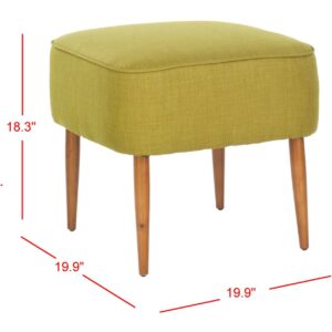 SAFAVIEH Eli Ottoman Sweet Pea A petite footstool with natural oak finished legs inspired by Mid-Century Modern chairs, the Eli Ottoman is ideal for the small bedroom or cozy apartment living room. Covered in a sweet pea green viscose blend, Eli is fabulous tucked beneath a Console Table or in pairs flanking a sofa.