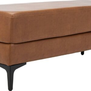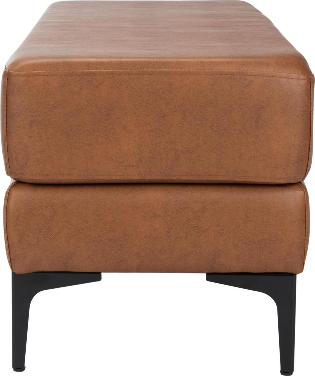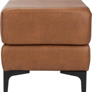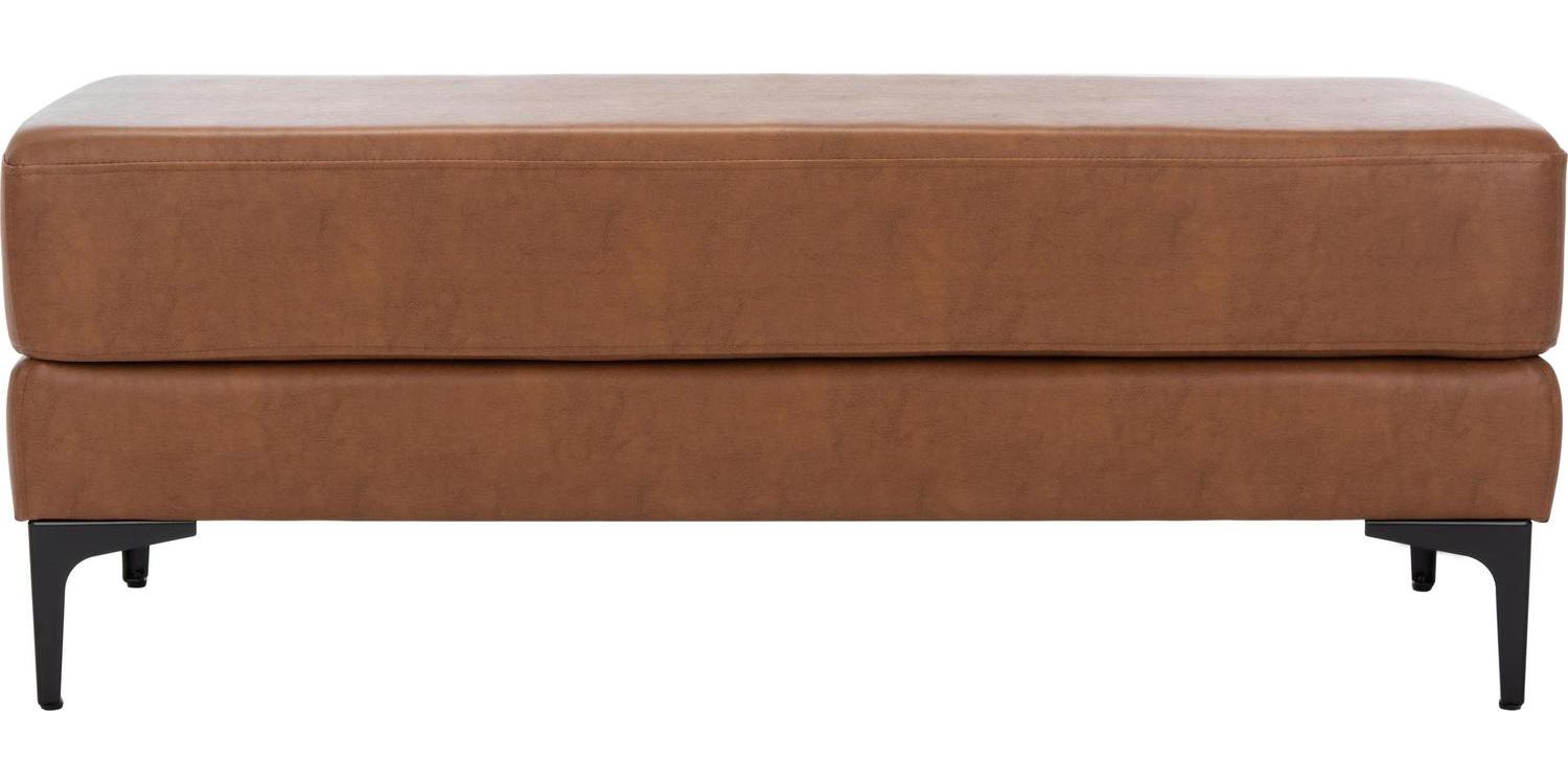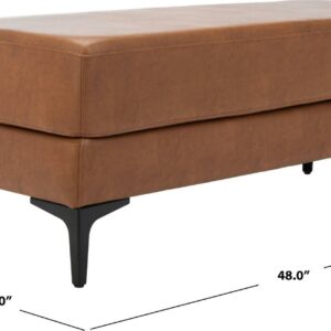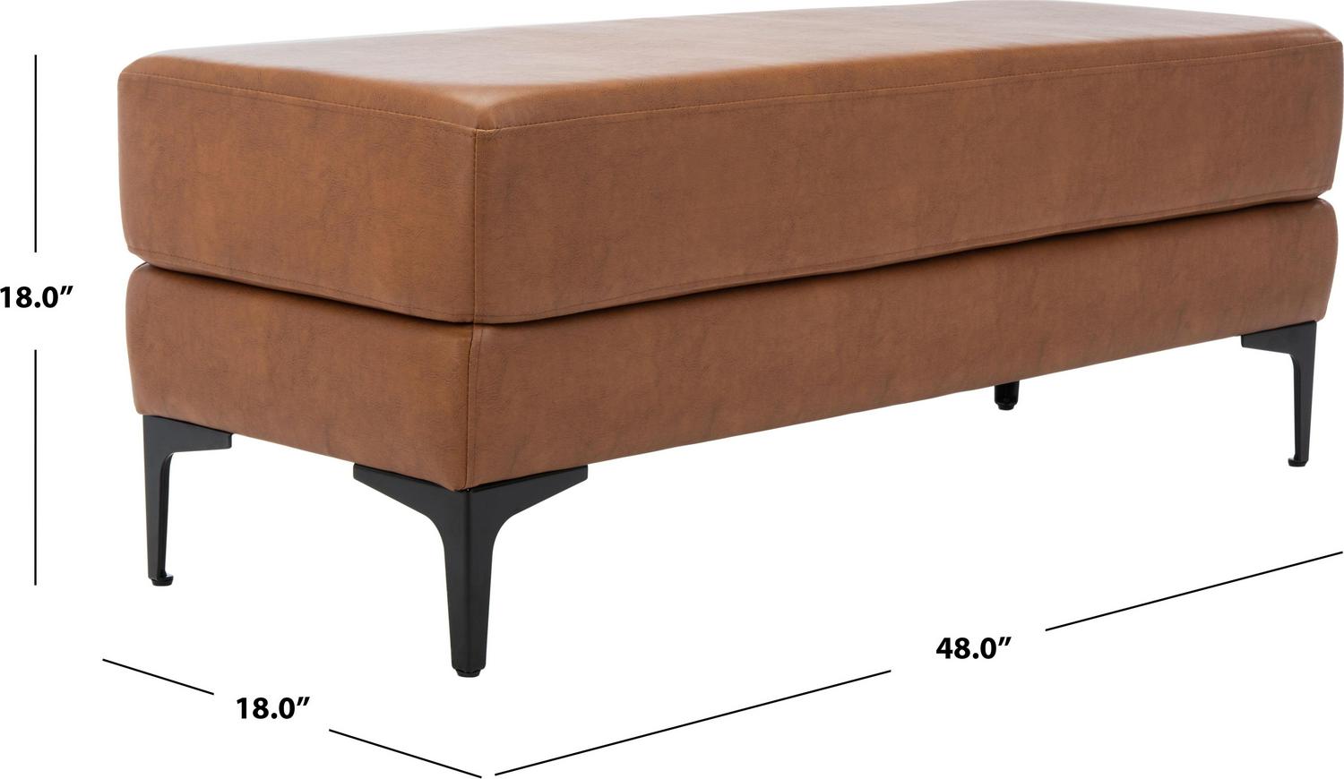SAFAVIEH Elise Rectangular Bench Brown / Black The Elise Rectangular Bench is the handsome accent piece that will enrich the look and feel of the living room, bedroom, or entryway. Transitionally styled to blend with any dcor, Elsie proudly showcases a slender profile and thick cushioned top, luxuriously upholstered in brown PU leather and supported by wood legs in a sleek black finish.