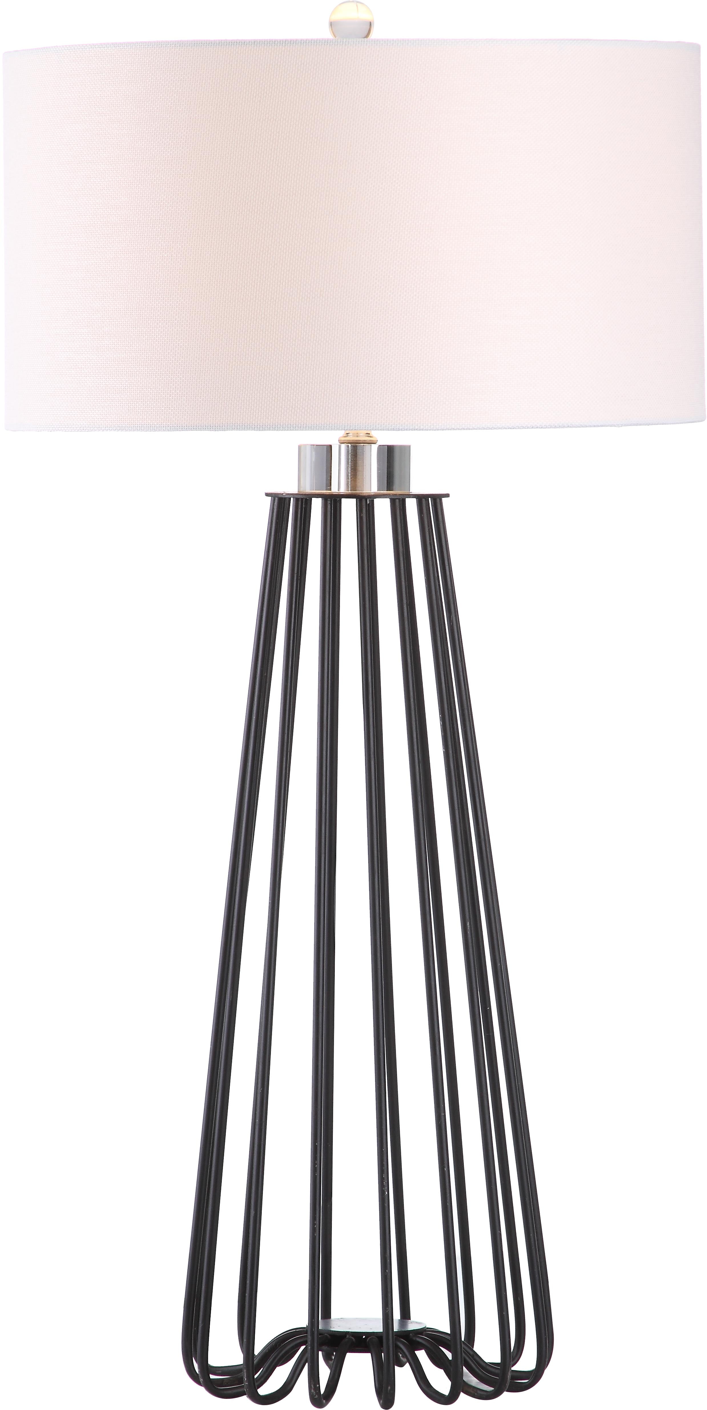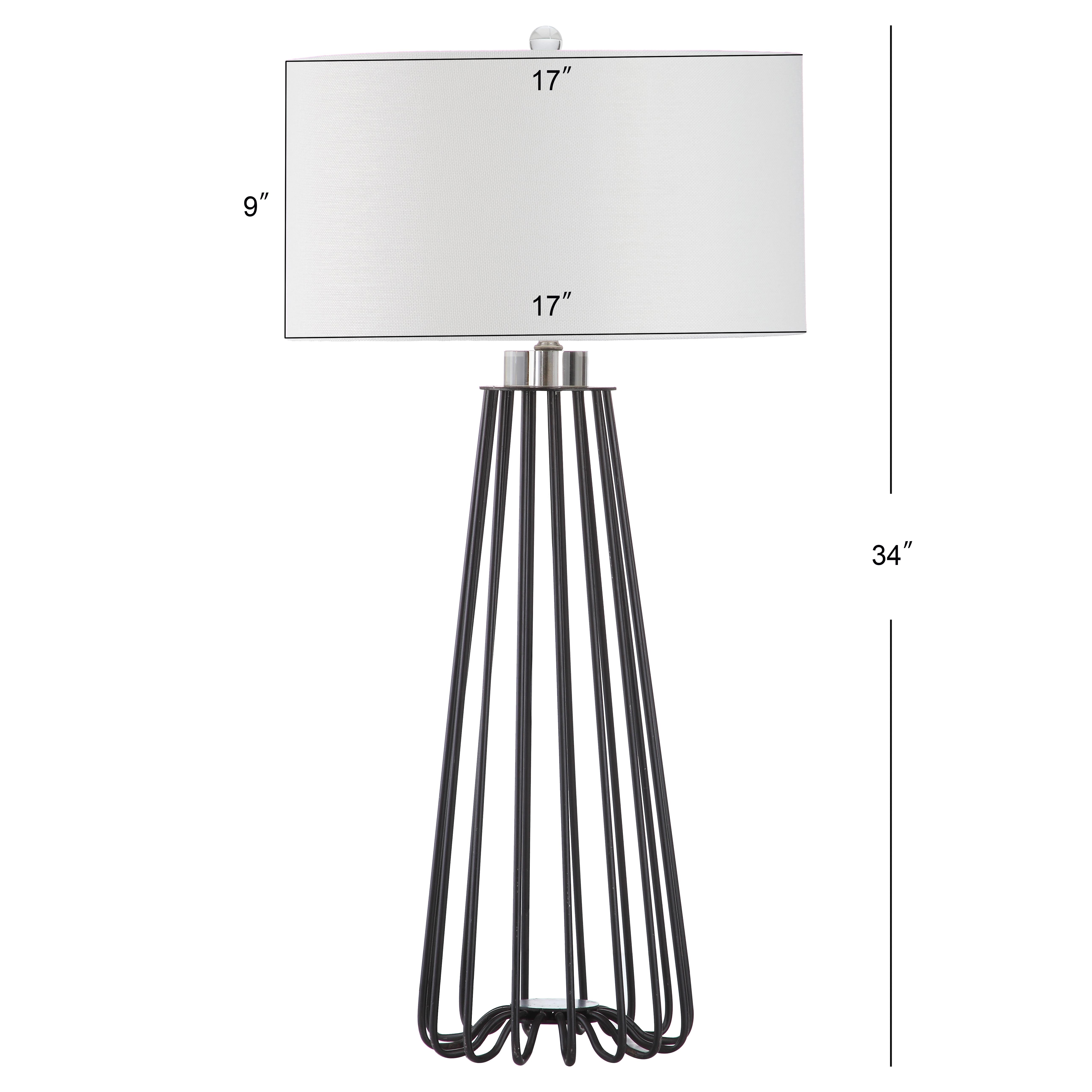 SAFAVIEH Estill Table Lamp (Set of 2) Industrial chic style at its finest, the Estill table lamp is crafted of strips of black metal artfully tapering up from its base. Topped with a white cotton drum shade and acrylic finial, this see through design lends a contemporary vibe to any space. Begin your rug, furniture, lighting, outdoor, and home decor search and discover over 100,000 SAFAVIEH products today.