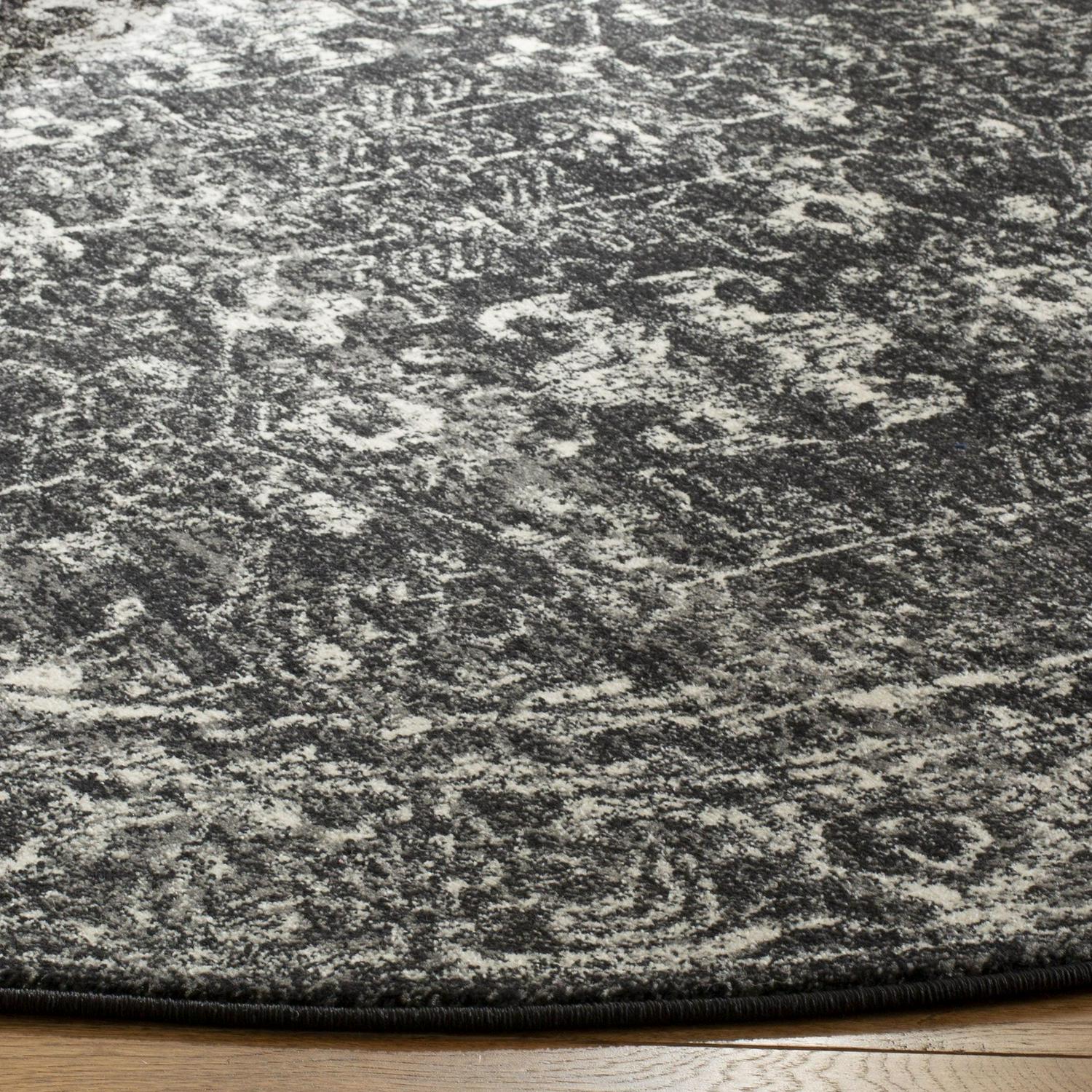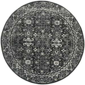 SAFAVIEH Evoke Denica Traditional Bordered Area Rug, Charcoal/Ivory, 6’7 x 6’7 Round