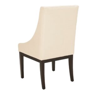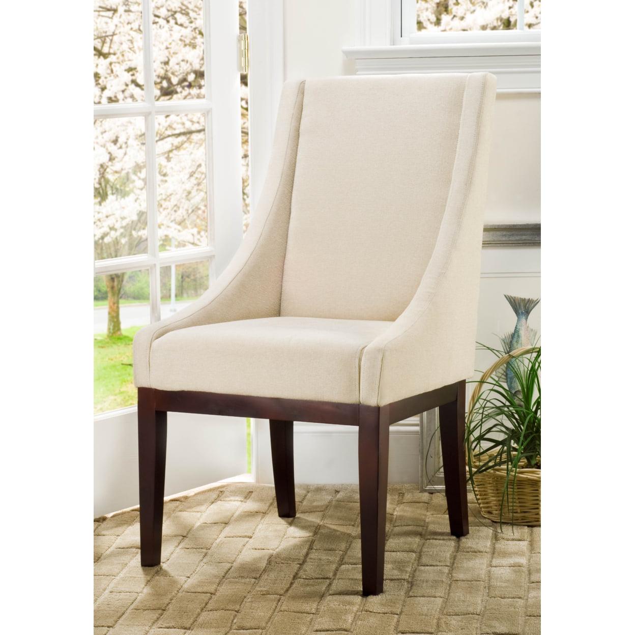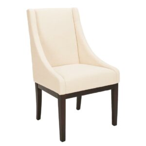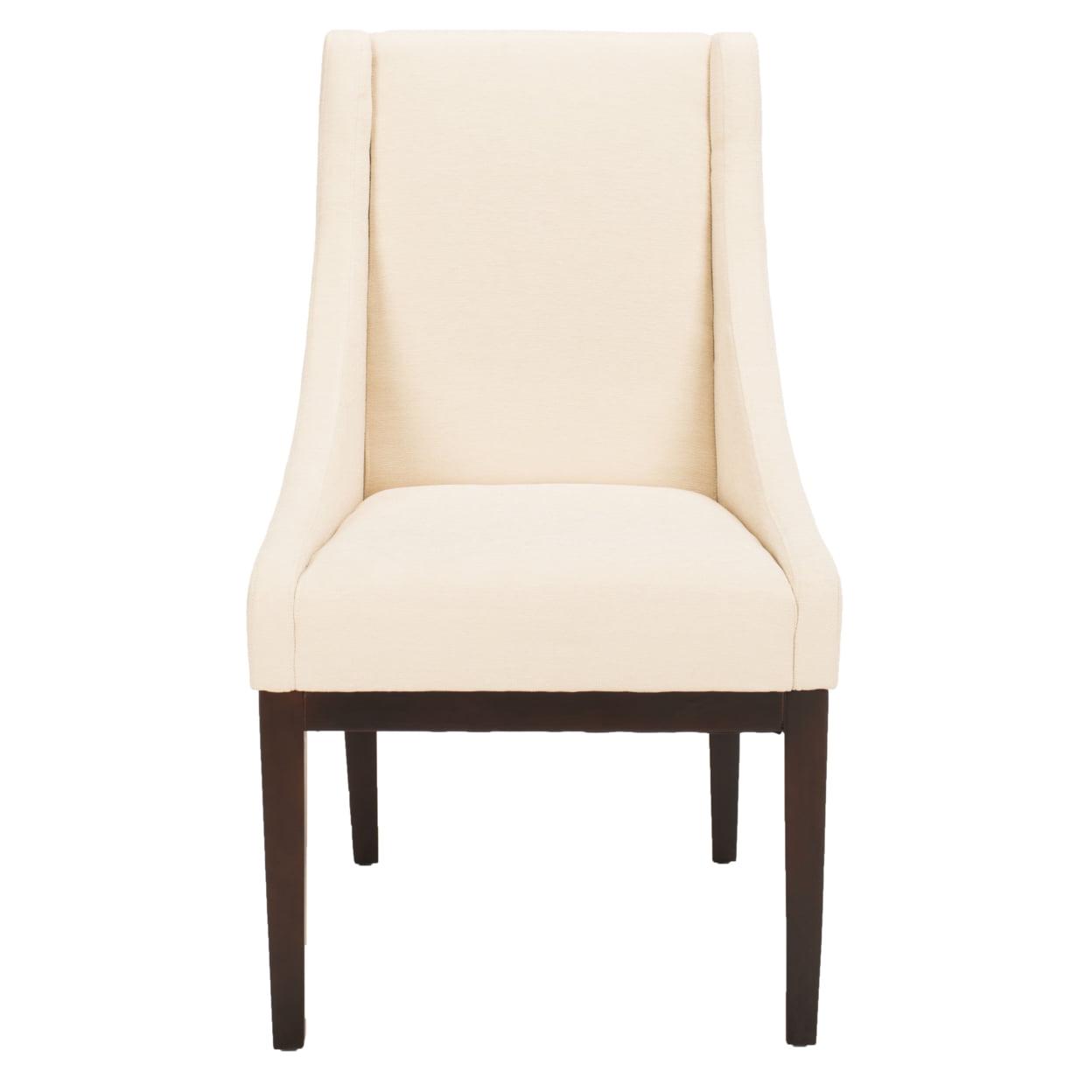 SAFAVIEH Fabric Sloping Arm Chair Cream / Fabric The simplicity of lines and gently sloping arms of the natural cream fabric upholstered Sloping chair, with legs in cherry mahogany finish, prove an elegant combination. Slope can dress up casual country dining rooms, add class to classic settings and even rest at ease in contemporary homes.