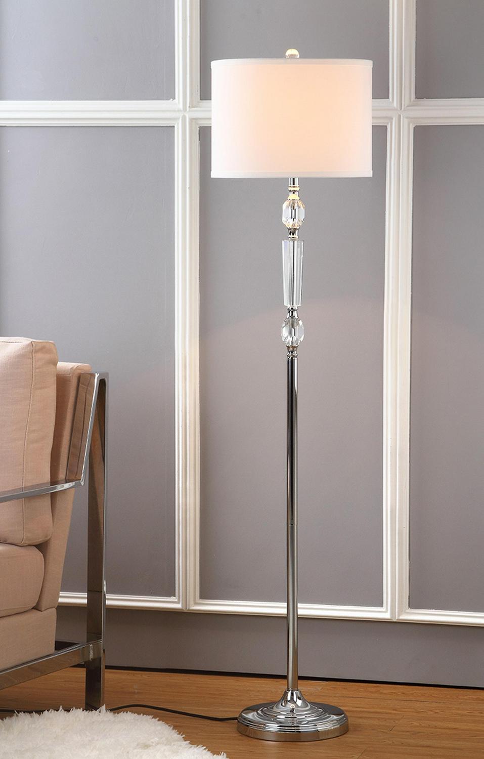 SAFAVIEH Fairmont 60 in. Glam Clear Crystal Floor Lamp with Off-white 100% Cotton Shade