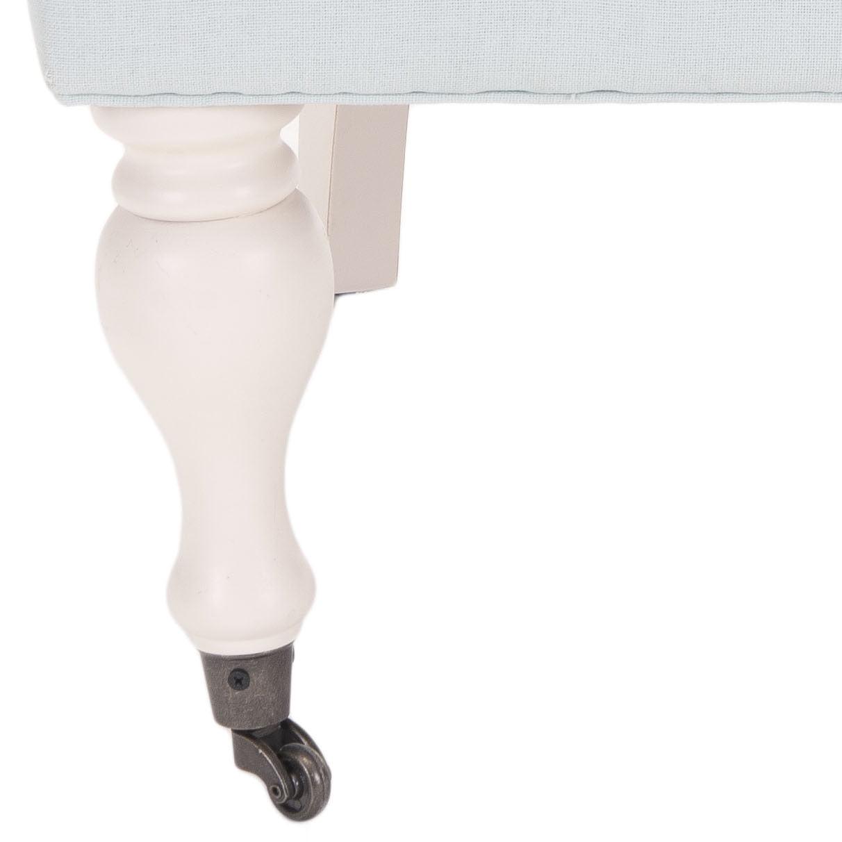– Birch wood spindle legs are finished in ivory and come with front casters for easy mobility.