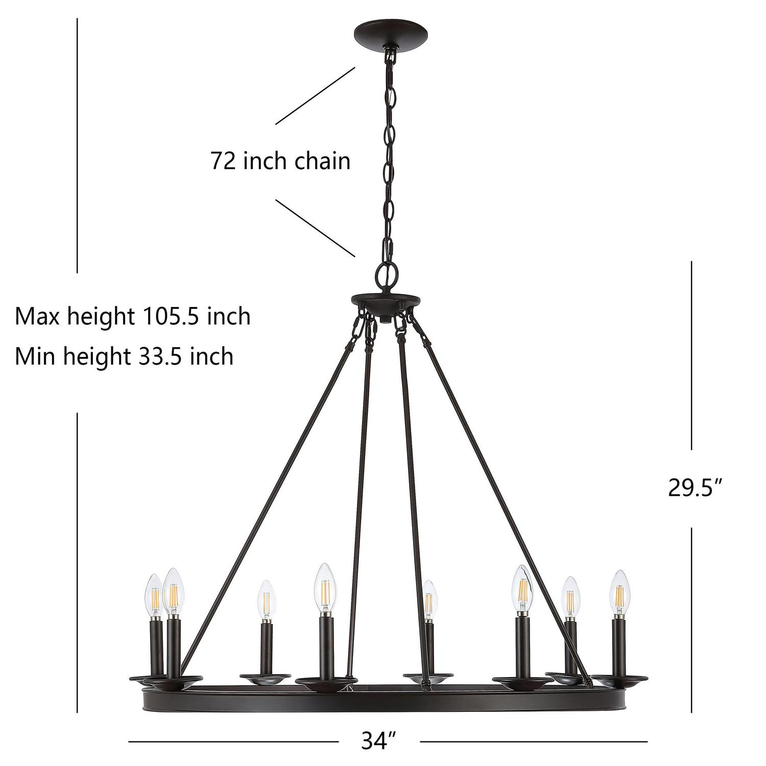 – Minimum Hanging Length: 33.5 in.