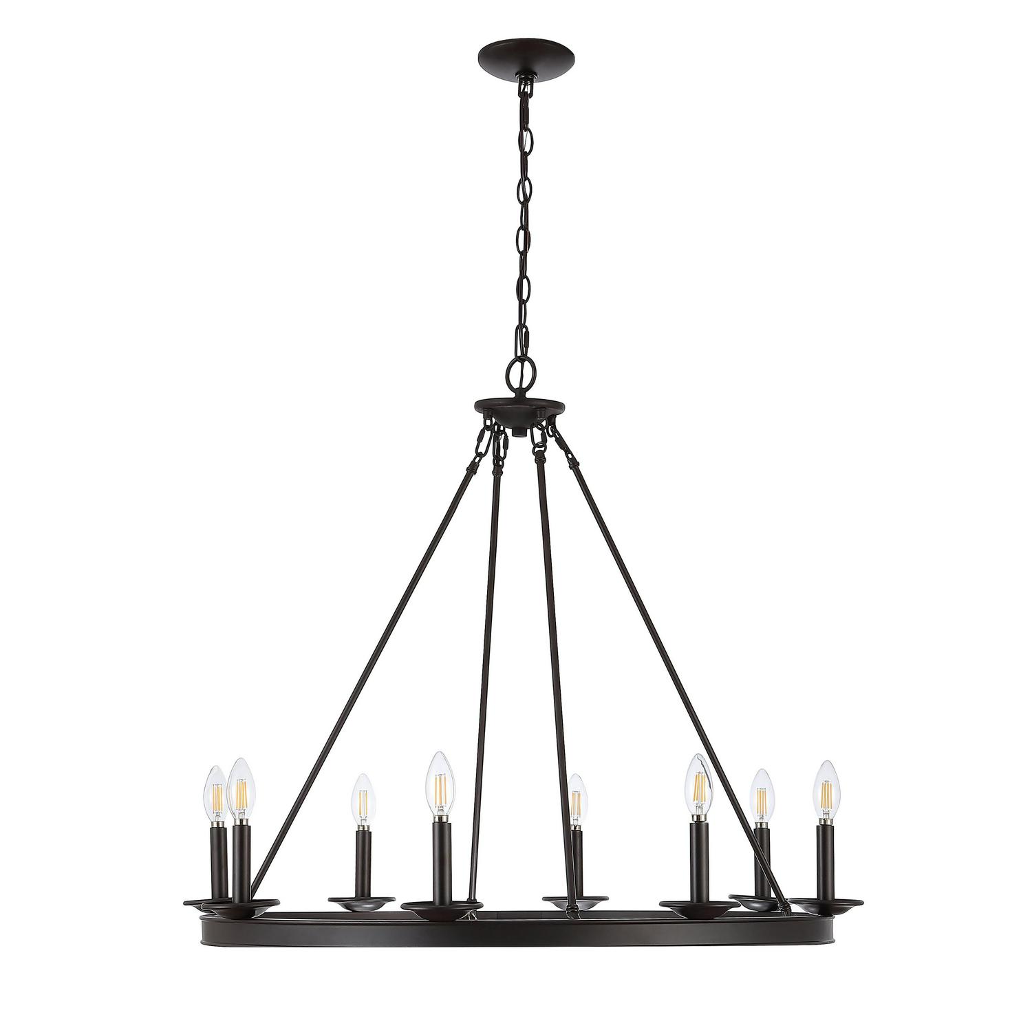 SAFAVIEH Fauna 8 Light 34″ Chandelier | Oil Rub Bronze | Designed for the contemporary tastemaker, this 8 light chandelier is an investment in stylish living. Its minimalist metal circle is finished in rich oil rubbed bronze so any room has a touch of industrial chic charm. Begin your rug, furniture, lighting, outdoor, and home decor search and discover over 100,000 SAFAVIEH products today.