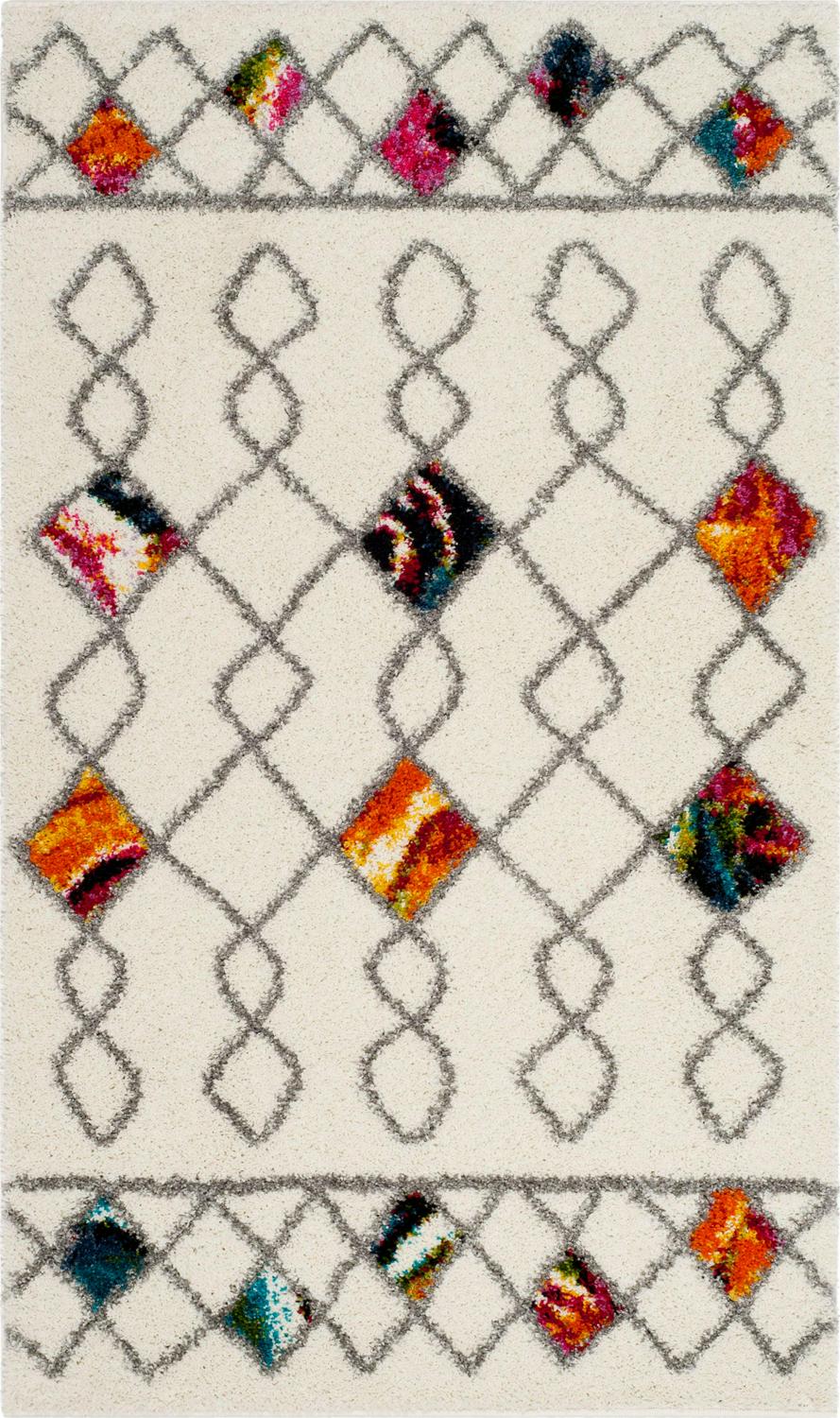 SAFAVIEH Fiesta Azura Geometric Shag Area Rug, Cream/Multi, 3′ x 5′