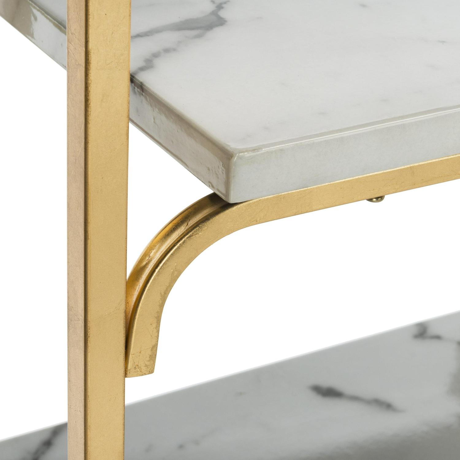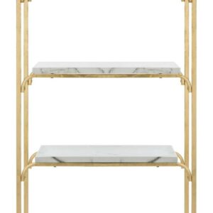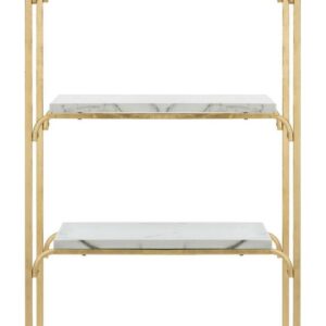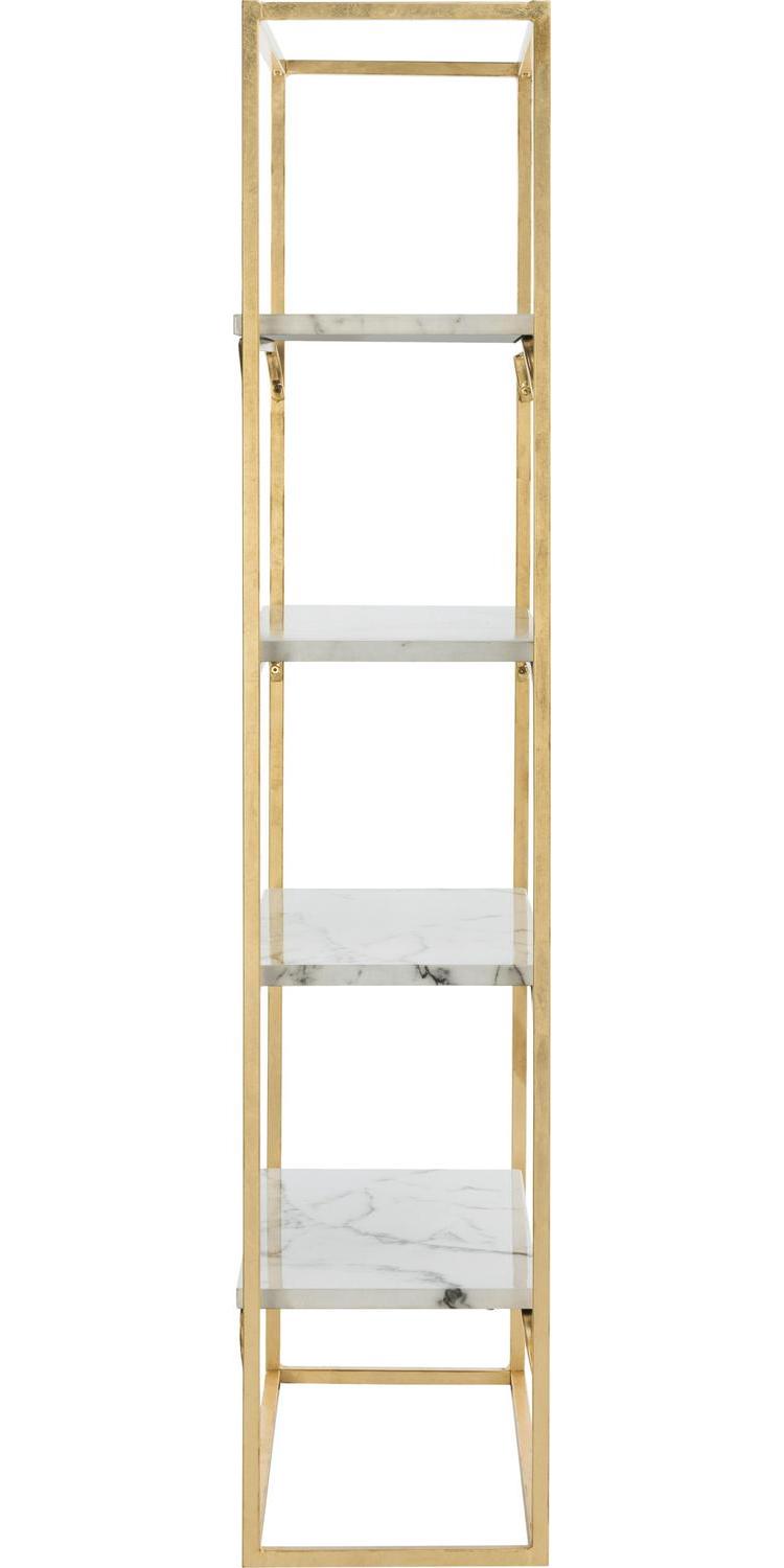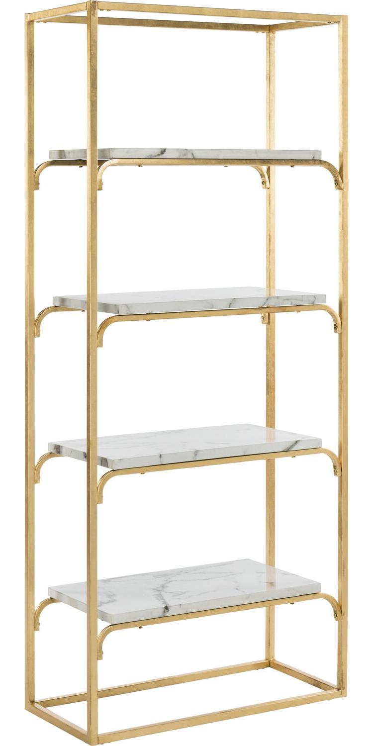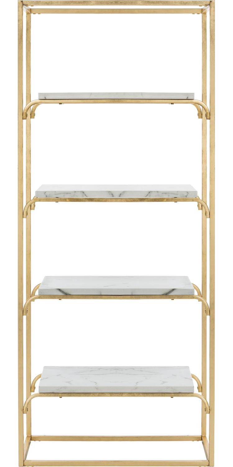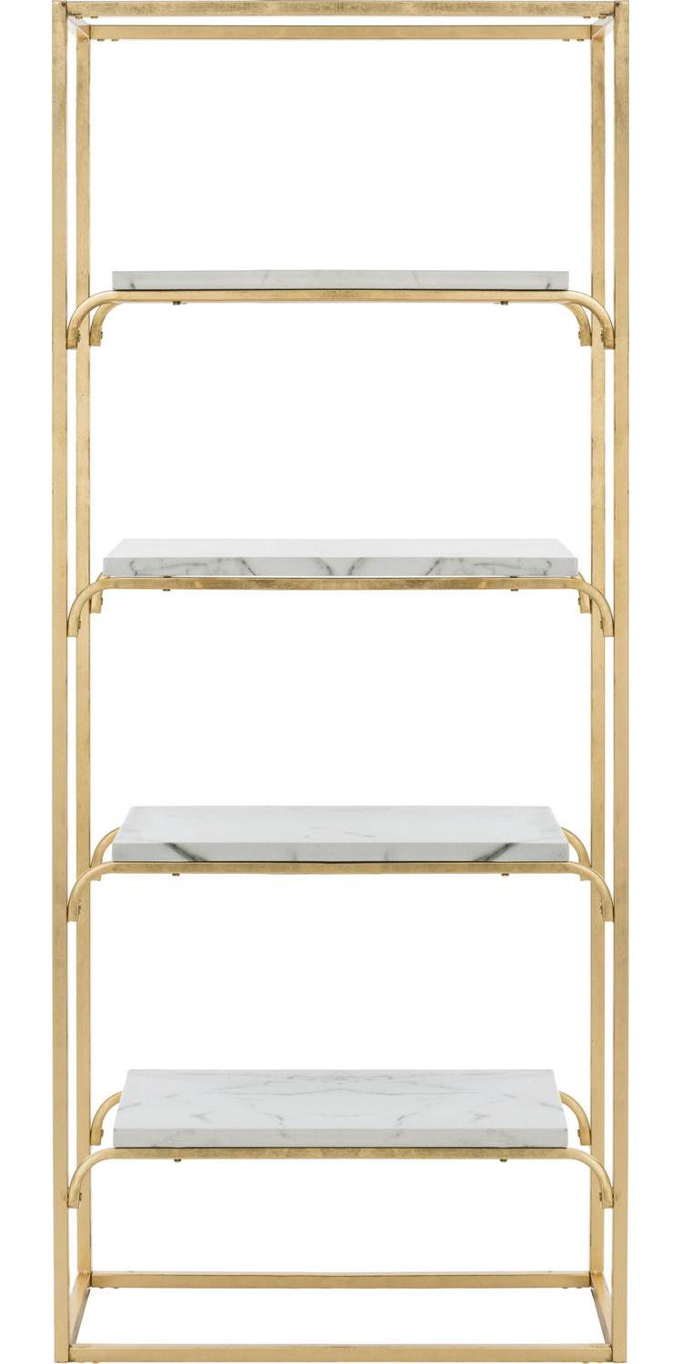 Add a dash of modern sophistication with this contemporary 4-tier étagère. Framed by a radiant gold finish, its four ample white marble veneer shelves are ideal for curating treasures. Designers use them in pairs in the living room.