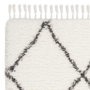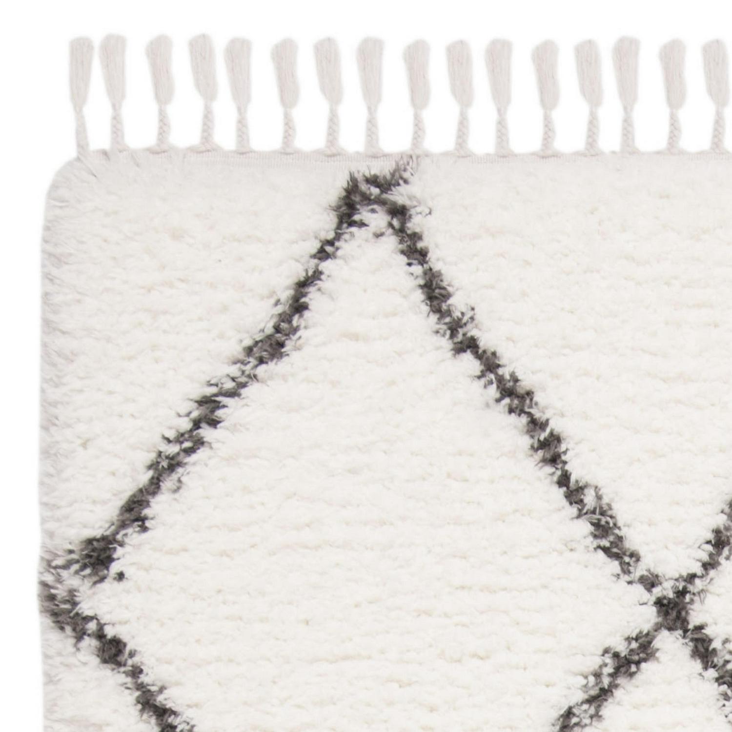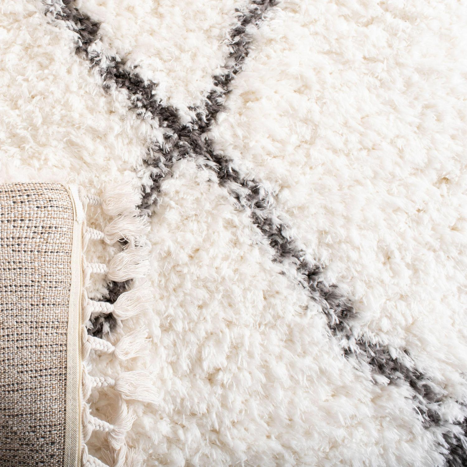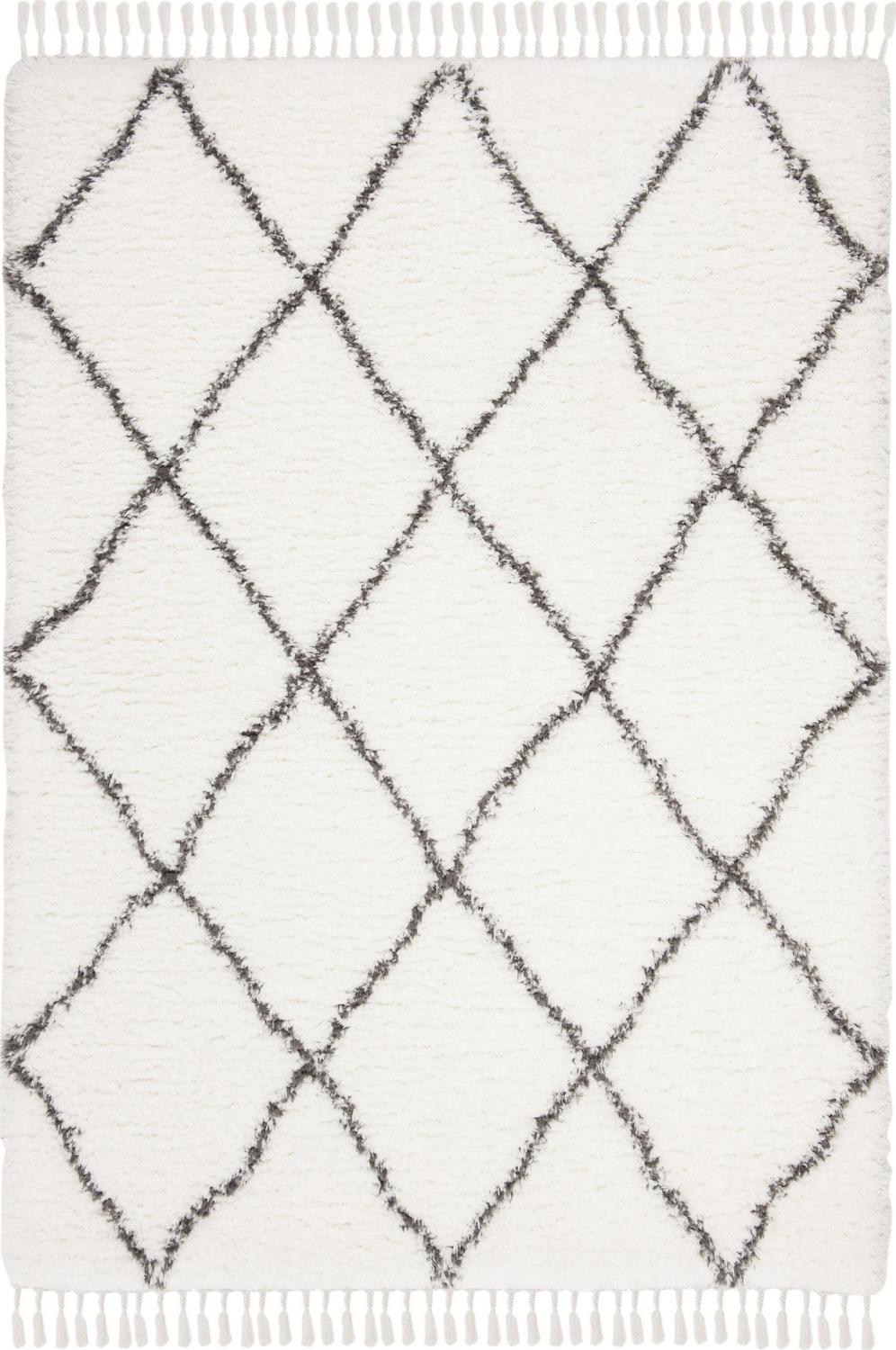 SAFAVIEH Flokati Juniper Geometric Fringe Polyester Shag Rug, Ivory/Dark Grey, 5’3 x 7’6