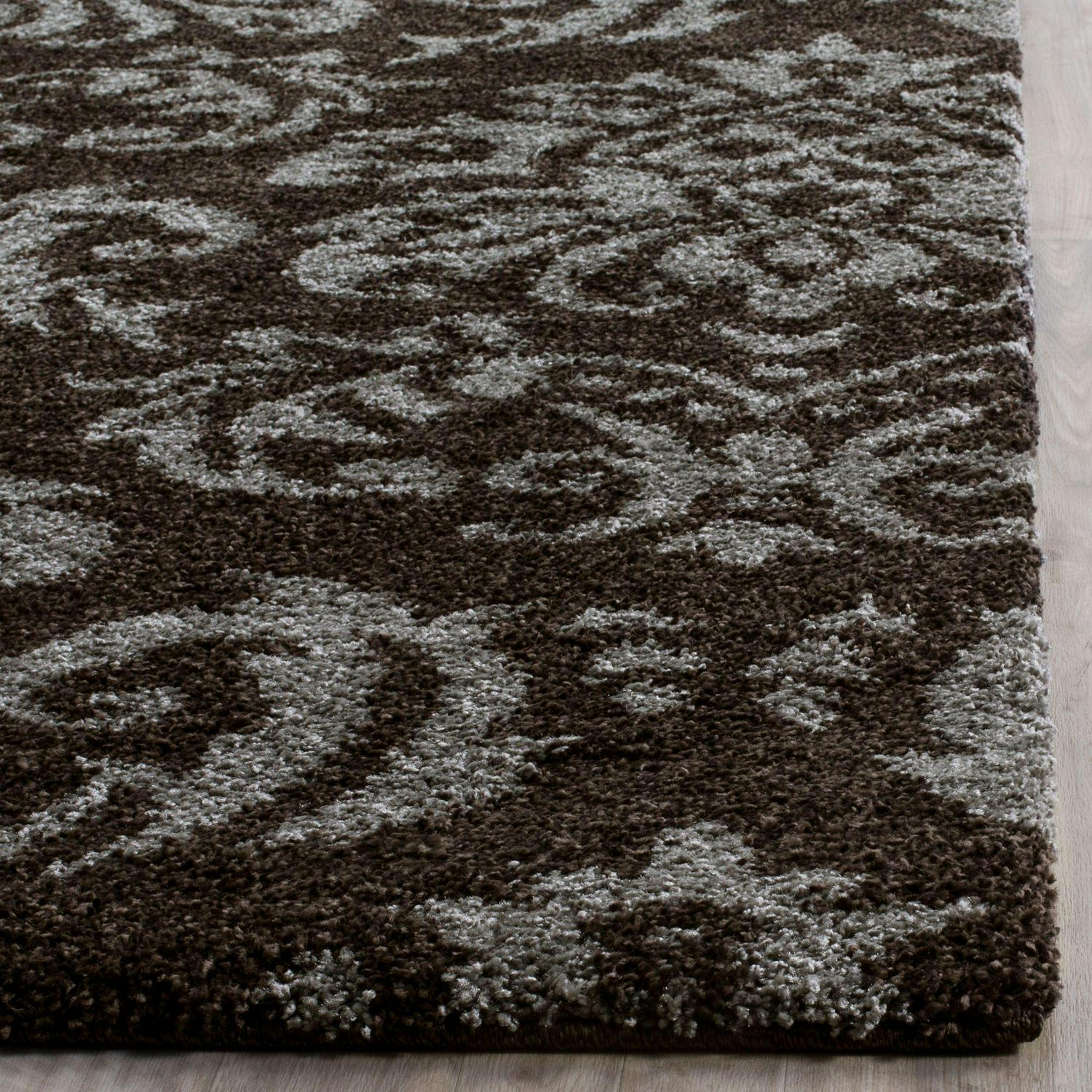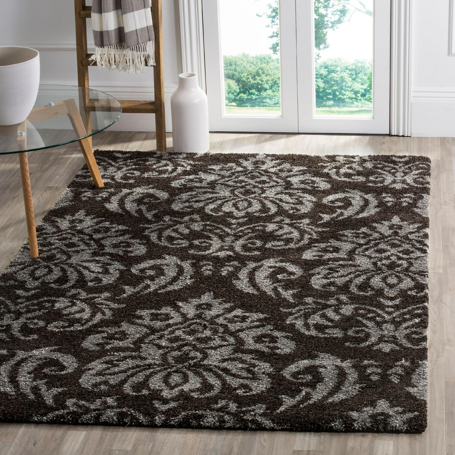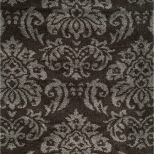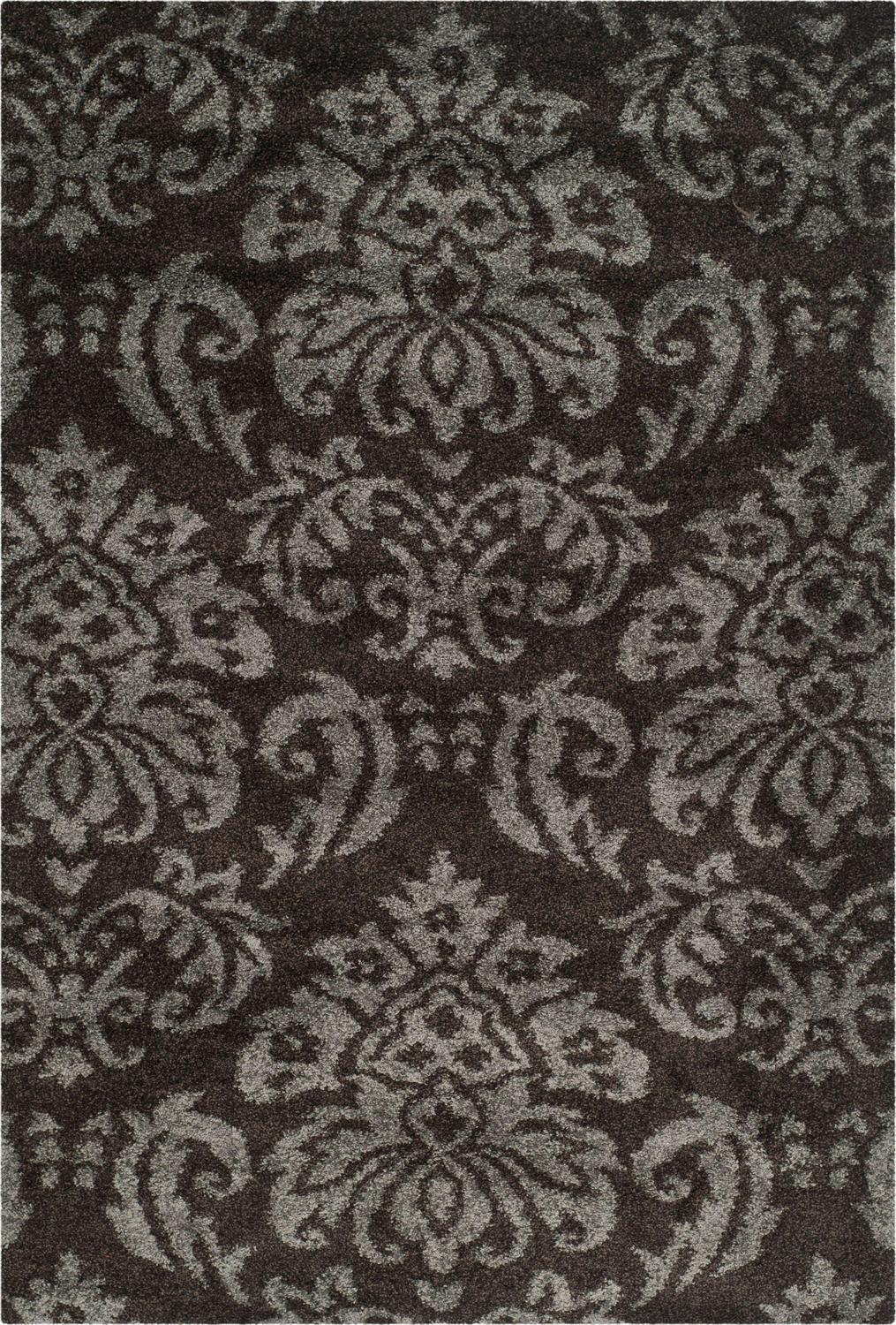 SAFAVIEH Florida Desmond Damask Plush Shag Area Rug, Dark Brown/Smoke, 5’3 x 7’6