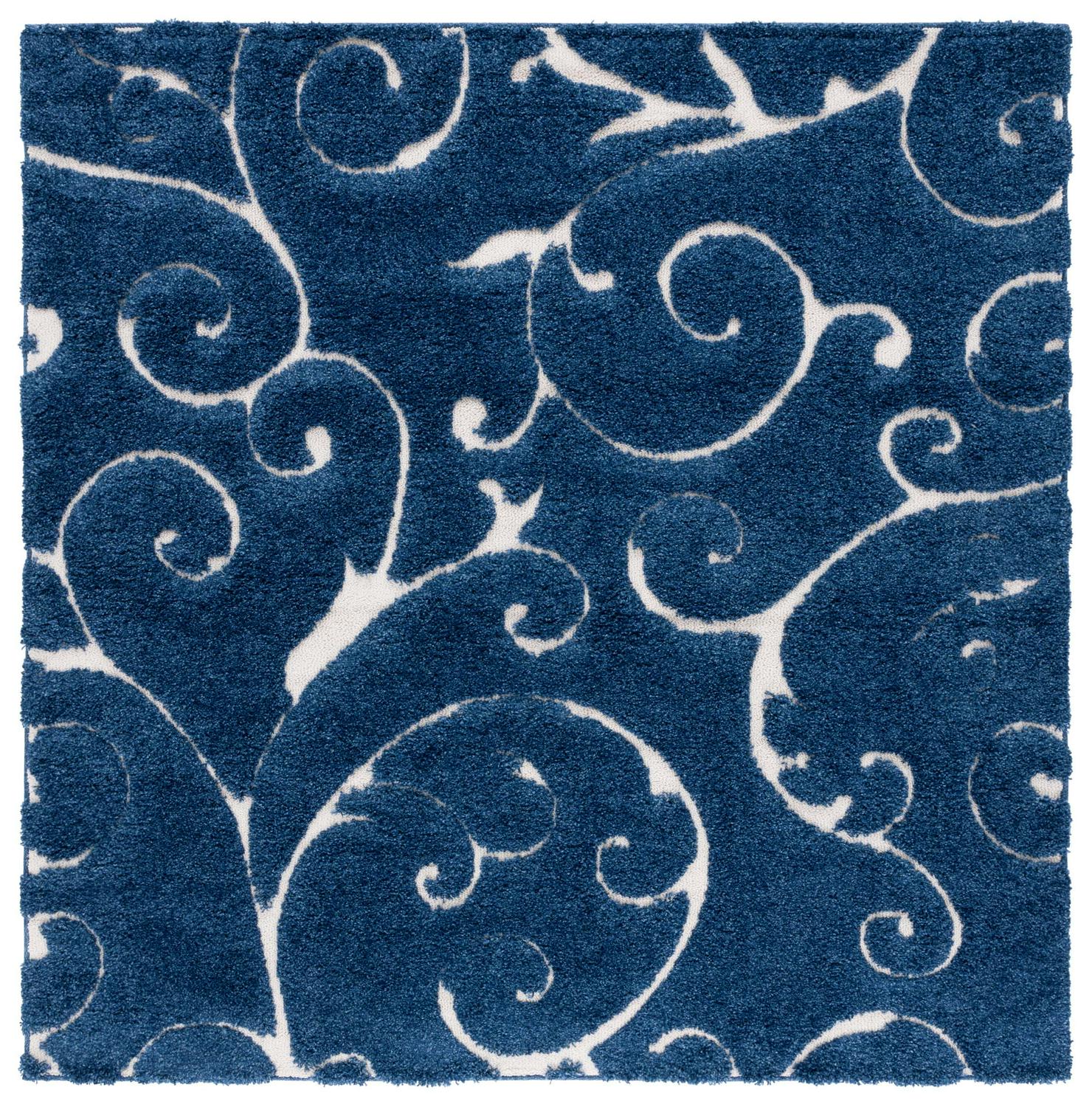 SAFAVIEH Florida Doug Floral Vines Shag Area Rug, Dark Blue/Cream, 11′ x 11′ Square
