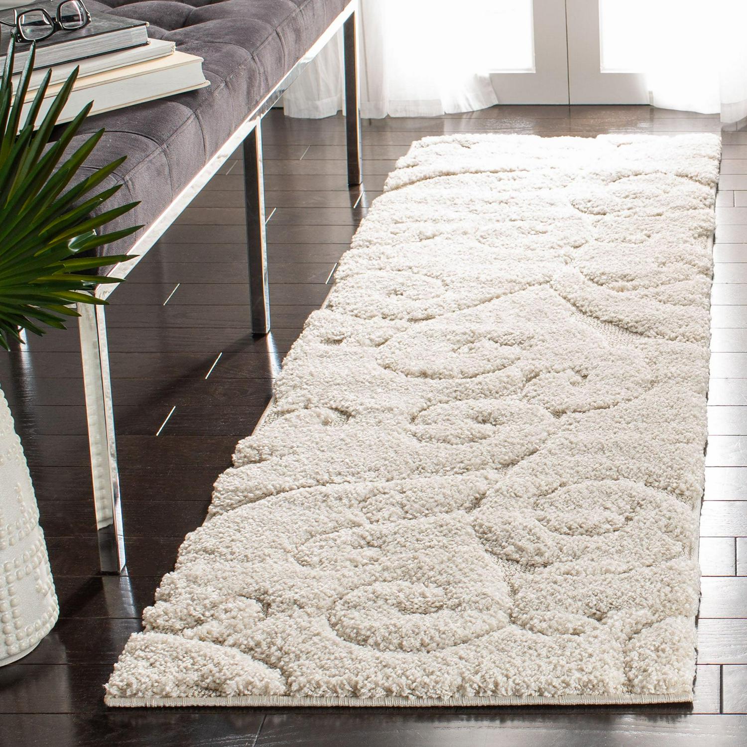 SAFAVIEH Florida Doug Floral Vines Shag Runner Rug, Cream, 2’3 x 21′