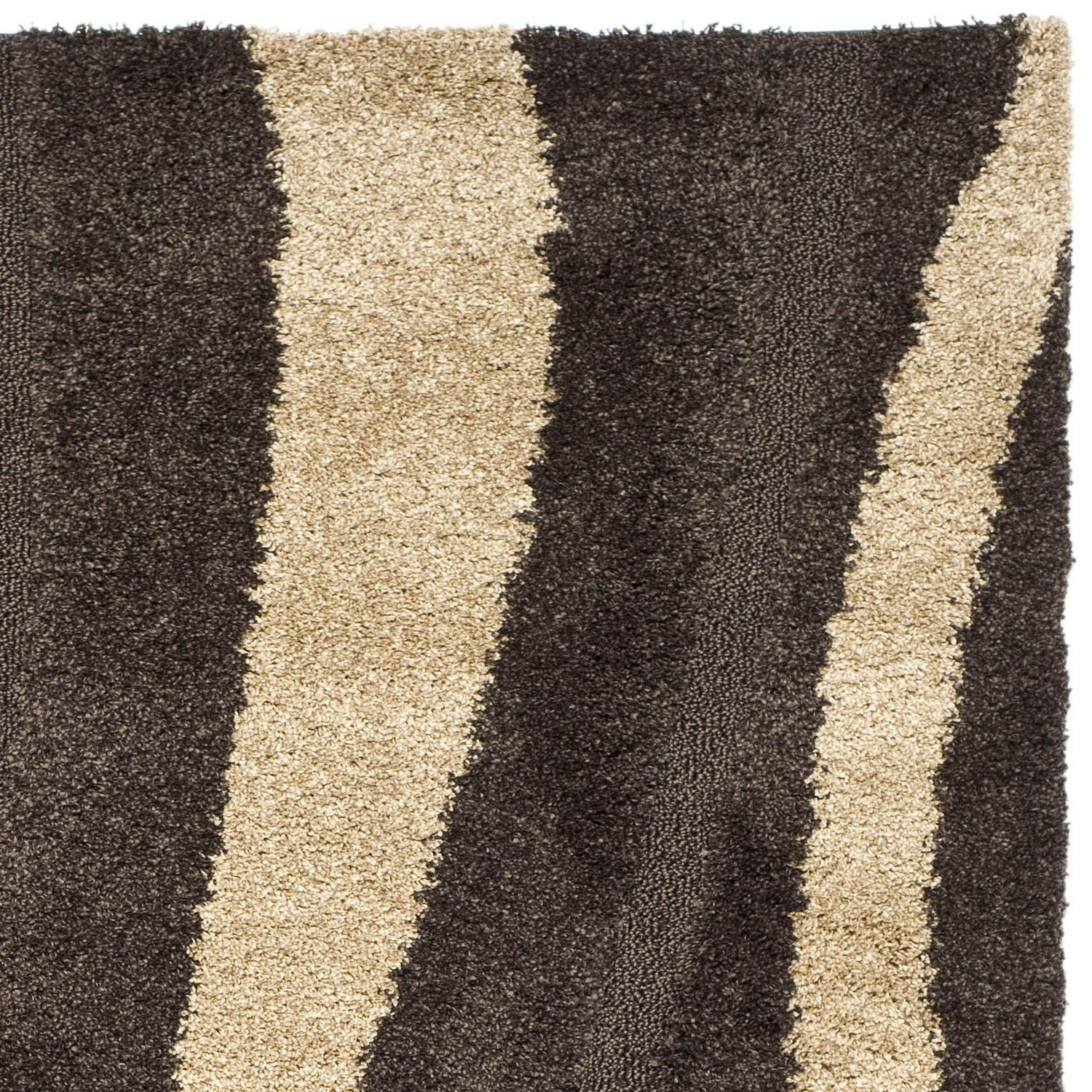 SAFAVIEH Florida Ellen Abstract Shag Area Rug, Dark Brown/Beige, 6′ x 9′