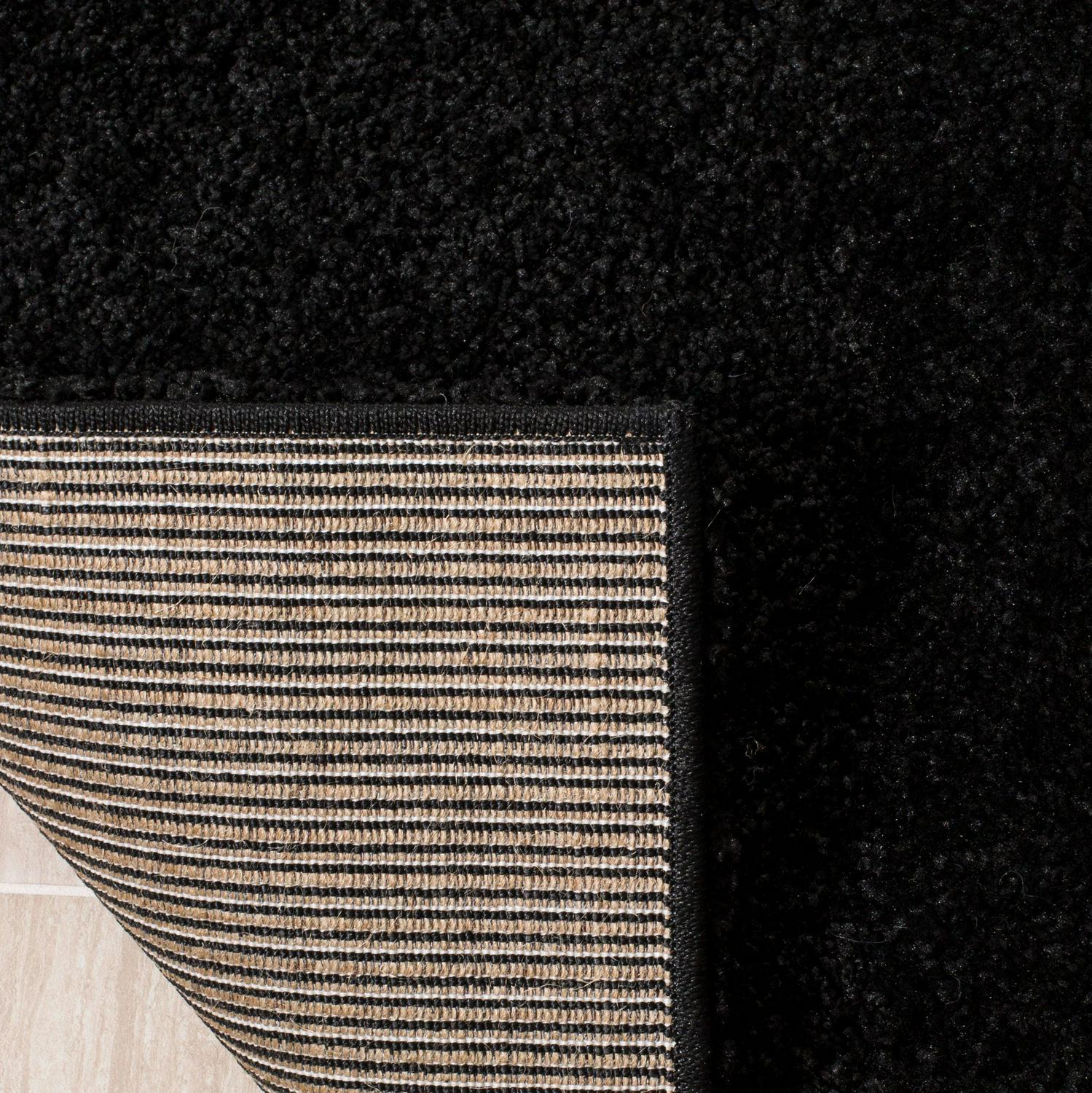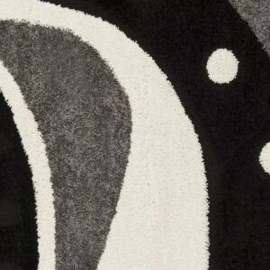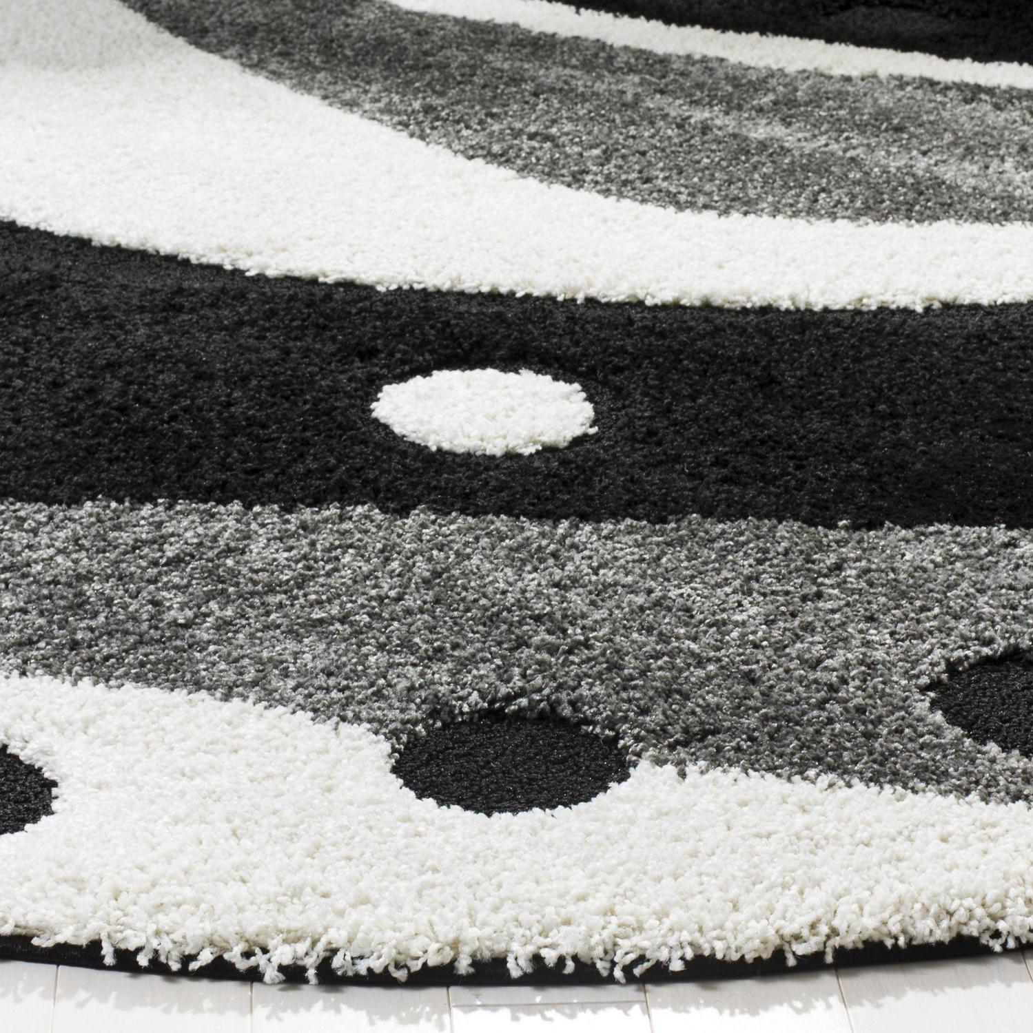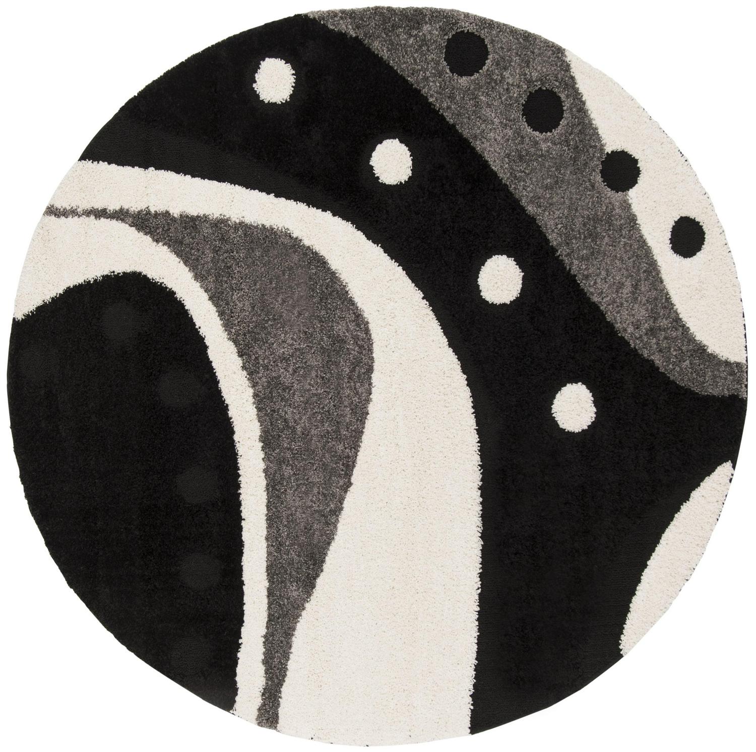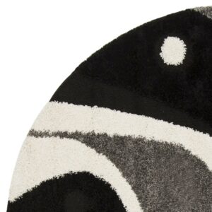 SAFAVIEH Florida Laidley Geometric Shag Area Rug, Black/Ivory, 4′ x 4′ Round