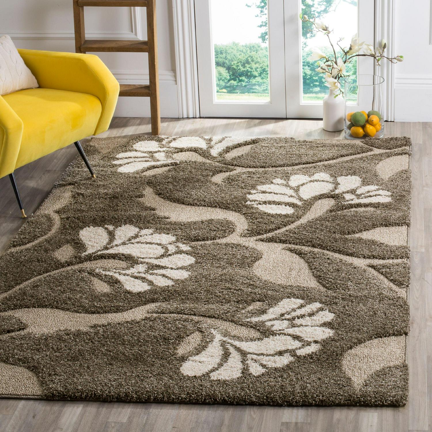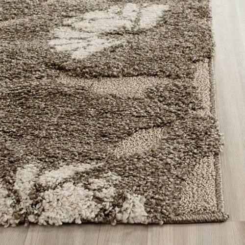 Florida Shag Rug Collection. Plush And Dense Pile Perfect For Living And Bedroom Décor. Inspired by the easygoing lifestyle of the Florida Keys, this shag by Safavieh displays beautiful botanical prints in warm, neutral color tones. A raised high and low beige pile artfully accentuates grand floral motifs, painted in a vibrant cream, for luxurious textural appeal. Durably power-loomed using long-wearing synthetic fibers for an easy-care carpet ideally styled for contemporary or rustic-chic décor.
