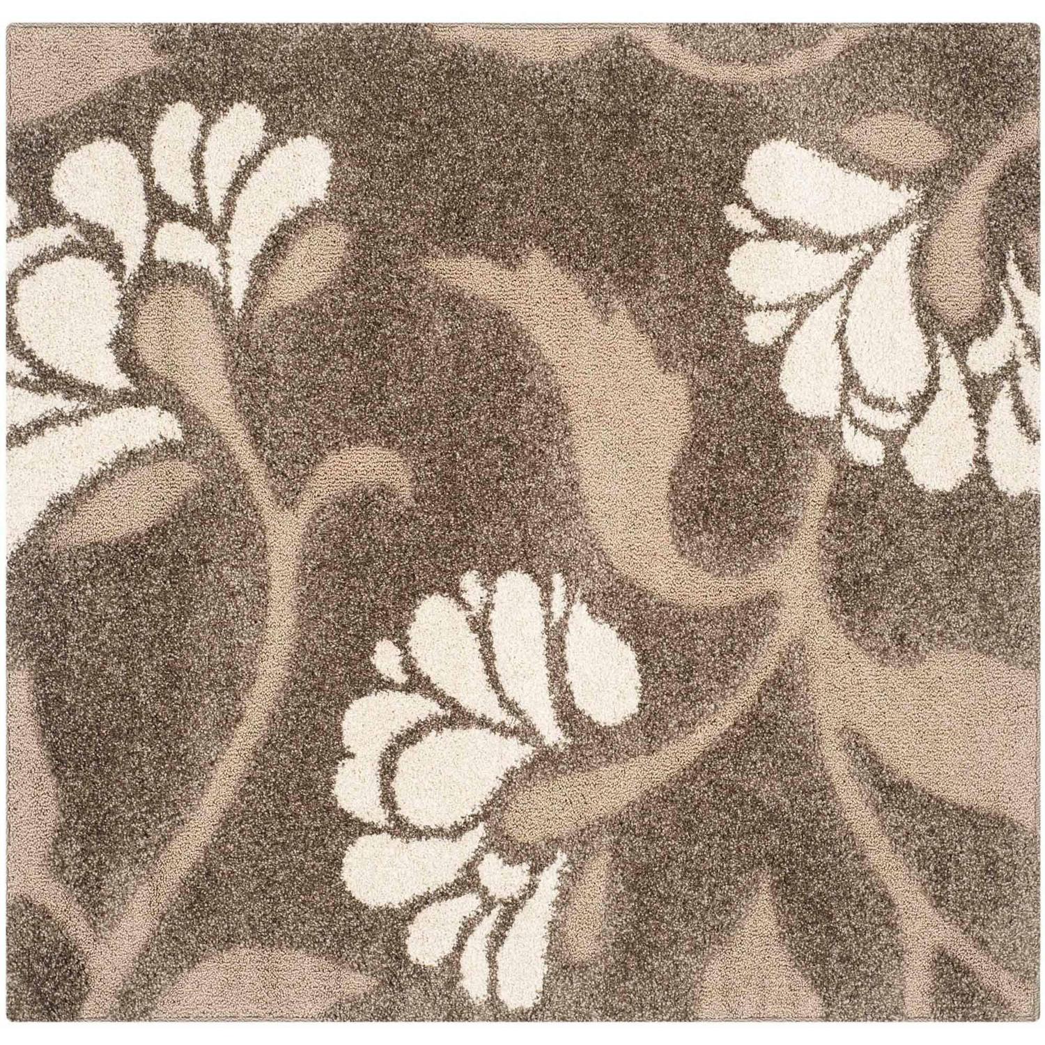SAFAVIEH Florida Teodor Floral Shag Area Rug, Smoke/Beige, 5′ x 5′ Square