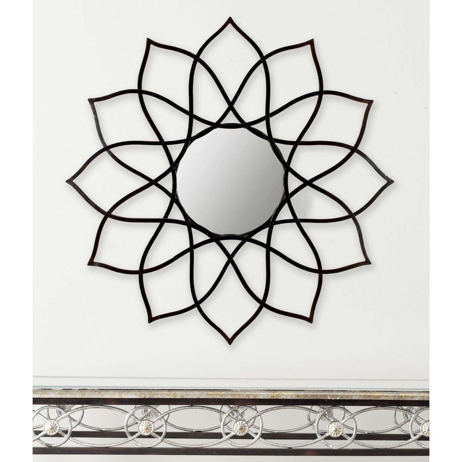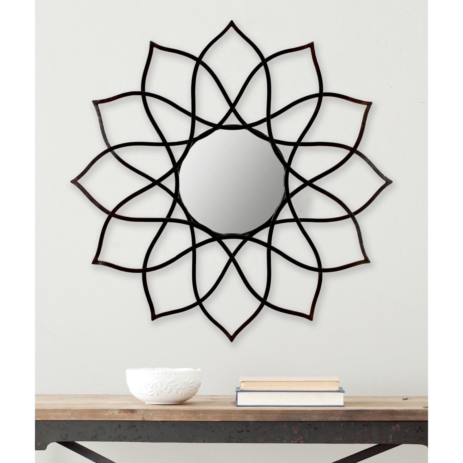 Add a floral touch with a contemporary twist to your home with the Safavieh Flower Power Mirror. Coffee and bronze wrought iron petals surround the mirror, creating a frame that blends the sunburst style with the silhouette of a flower. Its neutral hue makes this mirror versatile with many decorative styles.