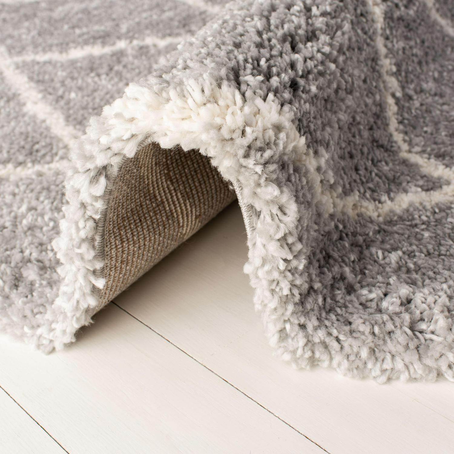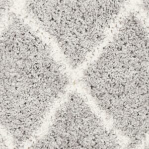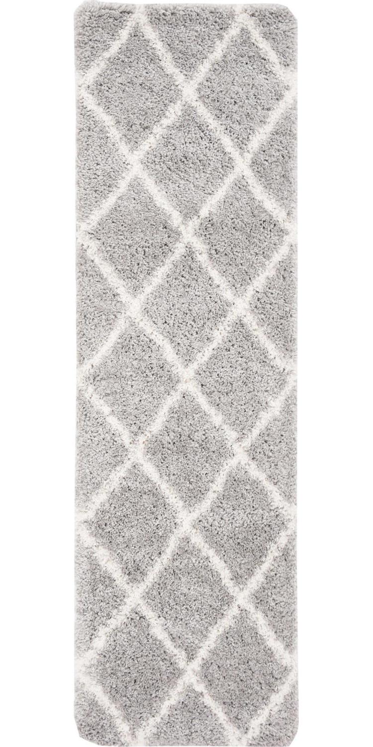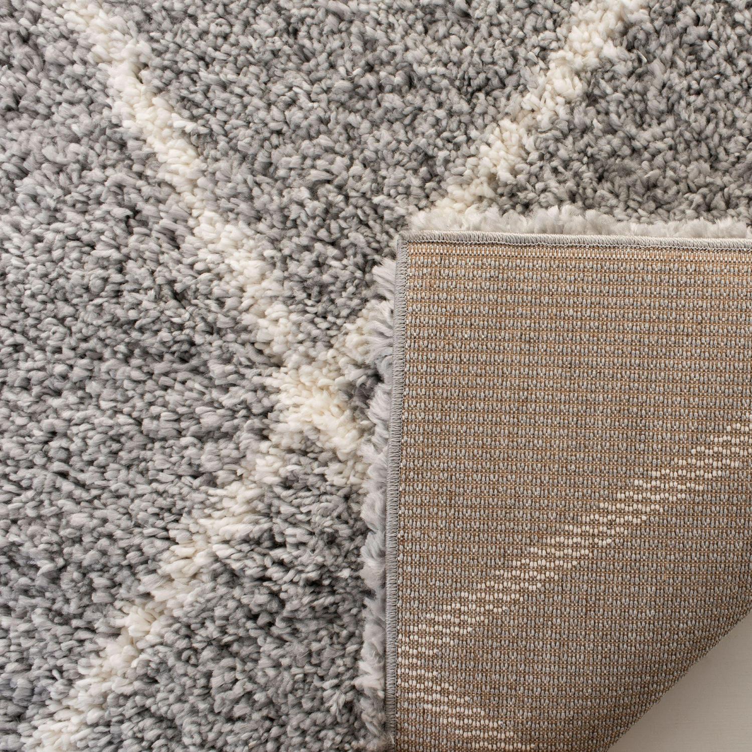 SAFAVIEH Fontana Catrina Geometric Plush Shag Runner Rug, Grey/Cream, 2’3 x 8′