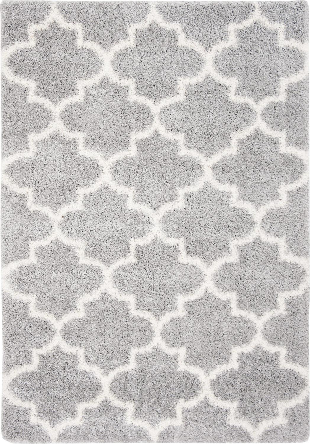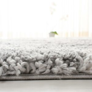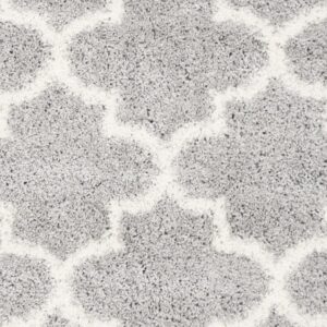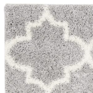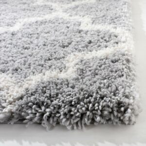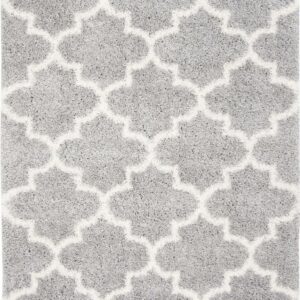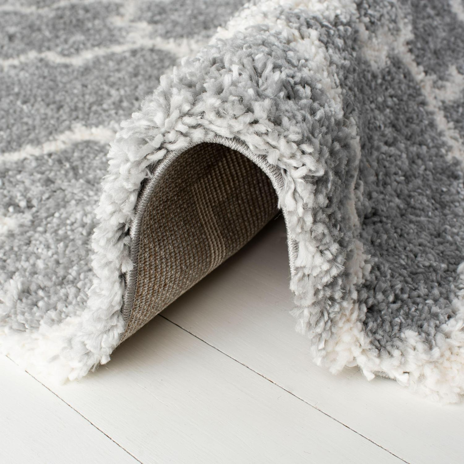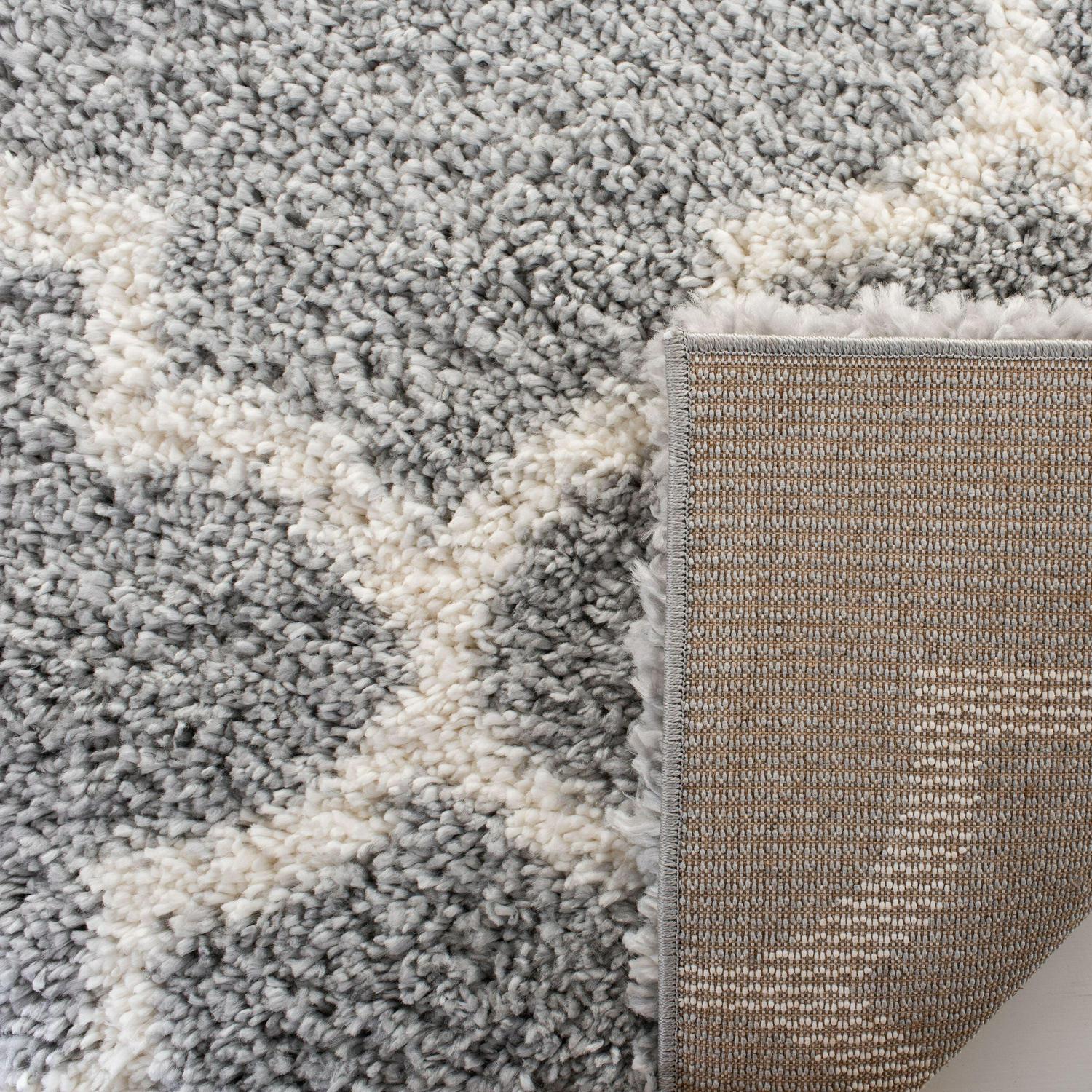 SAFAVIEH Fontana Hilda Geometric Plush Shag Area Rug, Grey/Cream, 4′ x 6′
