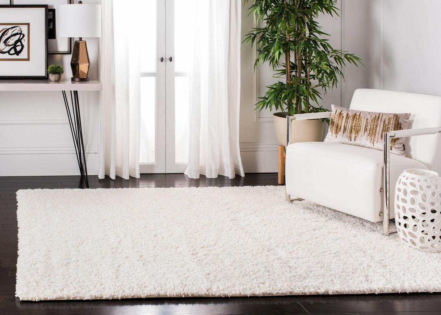 SAFAVIEH Fontana Jamie Solid Plush Shag Area Rug, Ivory, 5’3 x 7’6