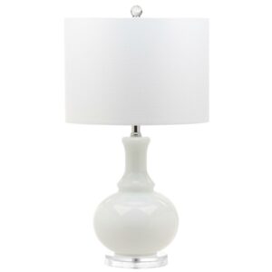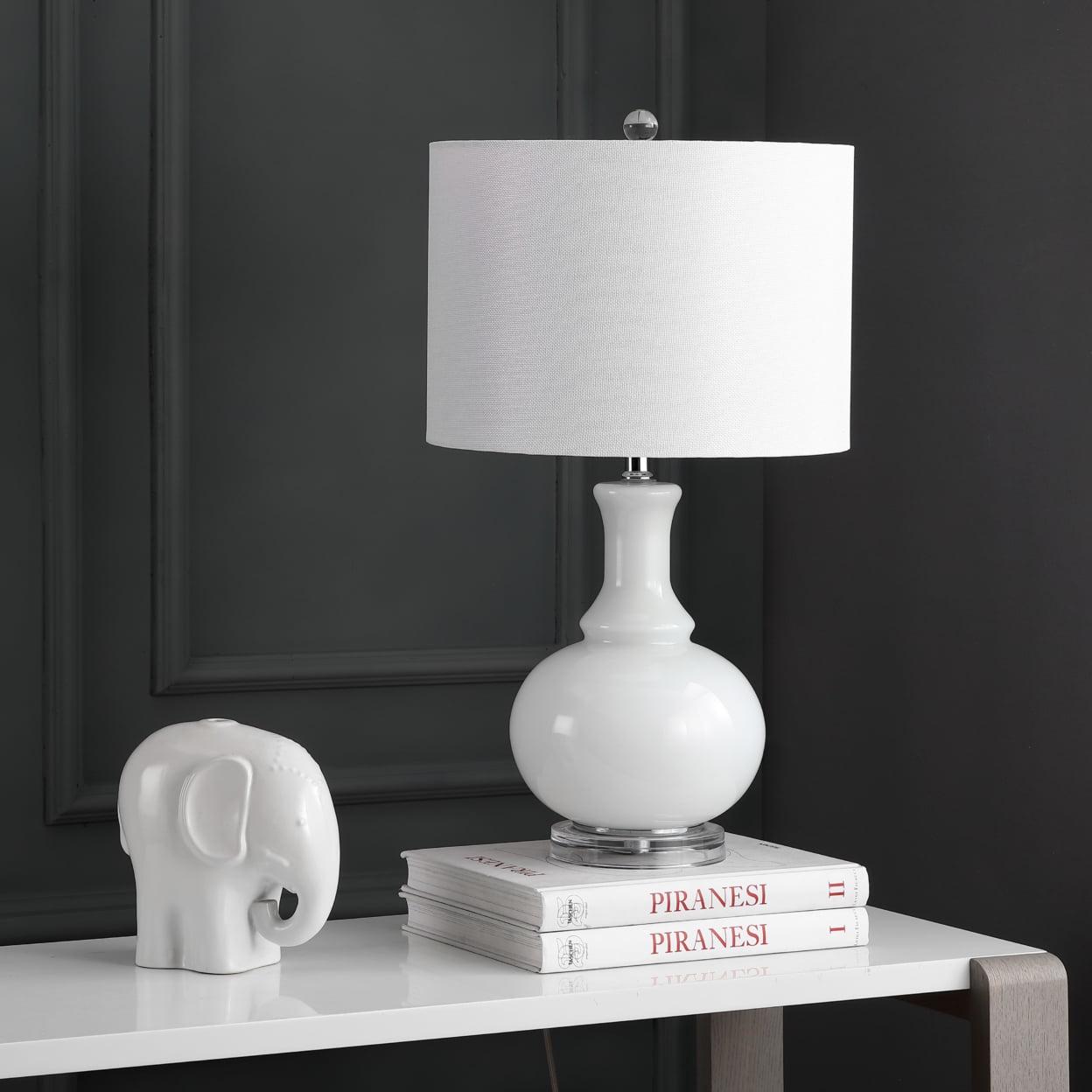 SAFAVIEH Franny Table Lamp (Set of 2) | Off White | This traditional white glass table lamp (set of 2), brings refined luxury to any space. Created to recall the ethereal interiors of Paris grand hotel on Avenue Montaigne, its crisp off white shade, and stunning crystal finial grab the aesthete s eye. Begin your rug, furniture, lighting, outdoor, and home decor search and discover over 100,000 SAFAVIEH products today.