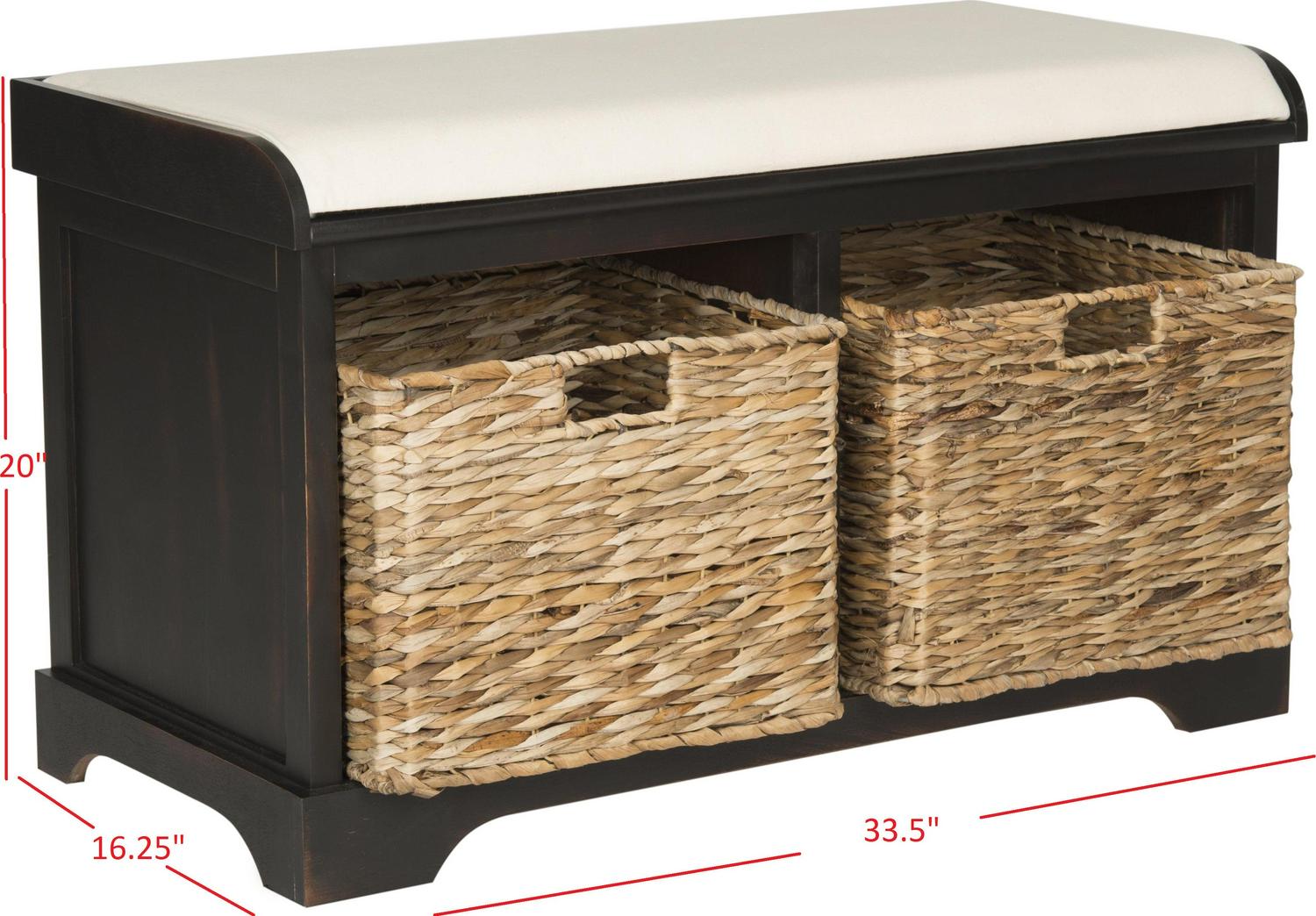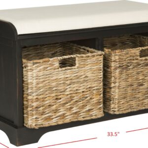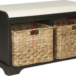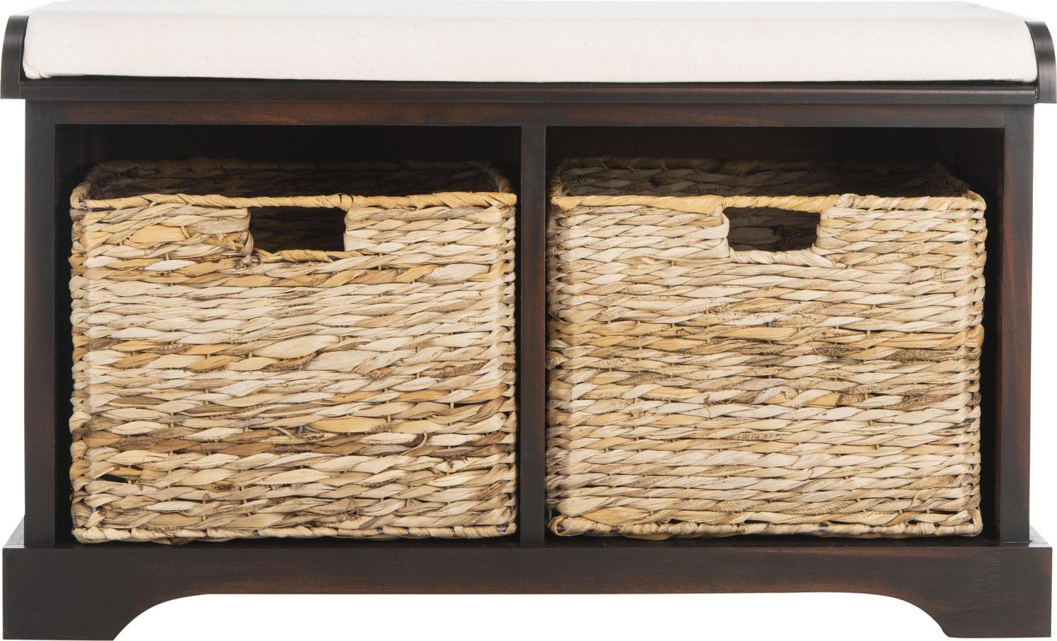 SAFAVIEH Freddy Wicker Storage Bench Brown Sit back and relax. This charming storage bench with brown pine wood frame and linen upholstered seat is perfect for changing shoes in an entry hall, and its woven baskets can hold towels and other necessities in a master bath. A versatile piece in any room.