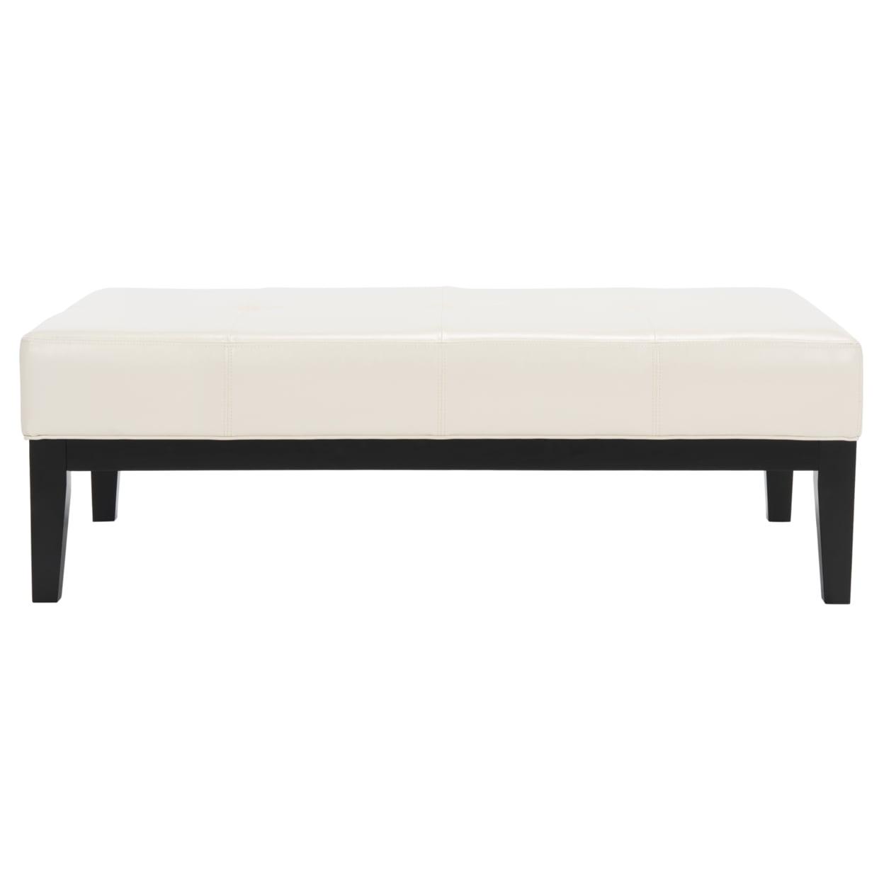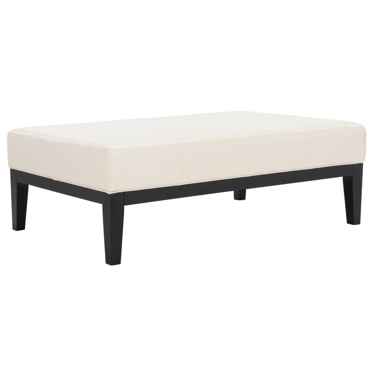 SAFAVIEH Fulton Rectangular Cocktail Ottoman Flat Cream True elegance is subtle, and the Fulton Rectangle Cocktail Ottoman brings urbane modern style to the living room or boudoir with simple clean lines. Crafted of cream PU leather and black birch wood, Fulton offers extra seating and space for an impromptu cocktail tray.