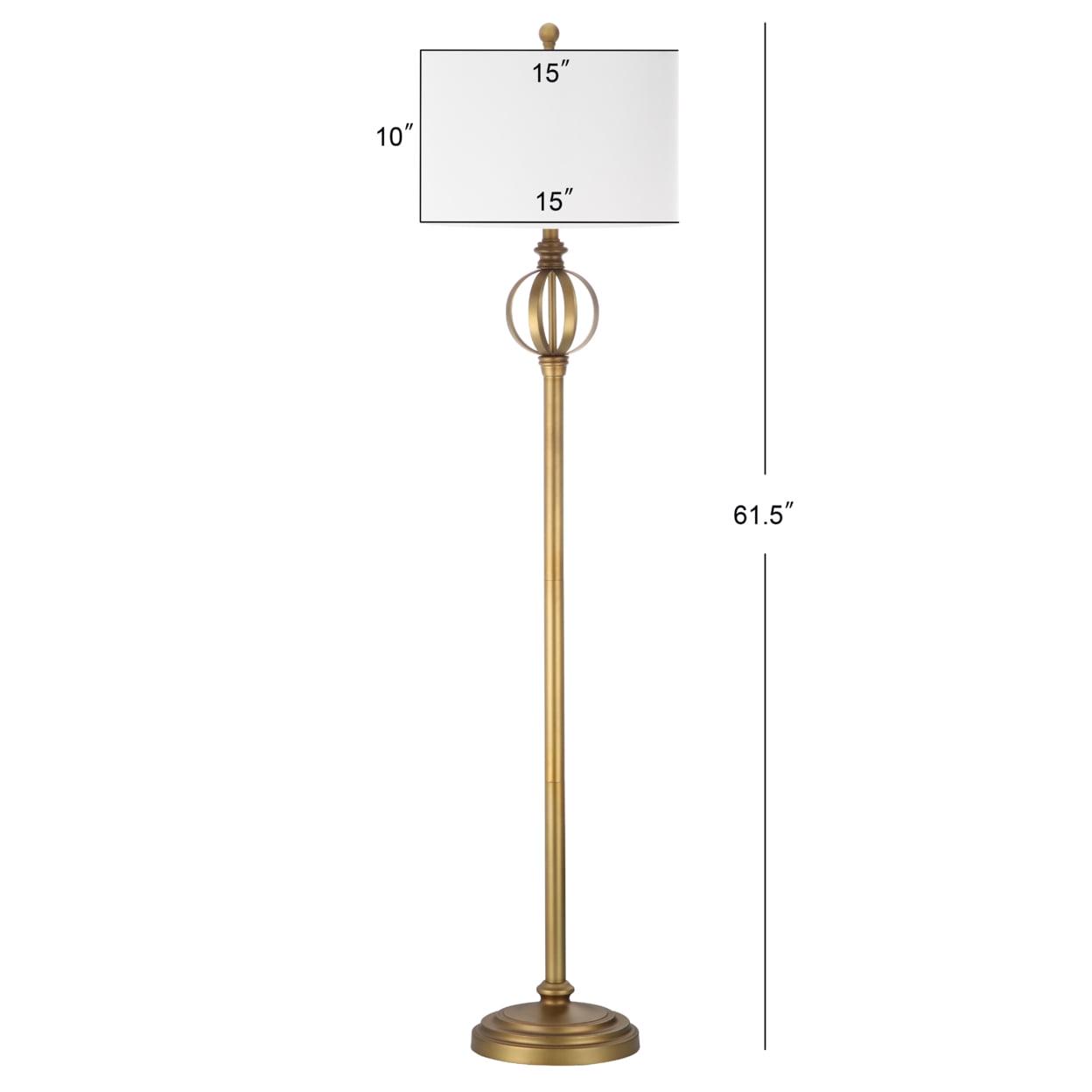SAFAVIEH Garden Sphere Floor Lamp | Gold | Classically refined and evocative of English garden ornaments, this elegant floor lamp is a work of metal artistry. Crowned with an open sphere and matching finial, its matte gold finished body is gracefully complemented by an off white cotton shade. Begin your rug, furniture, lighting, outdoor, and home decor search and discover over 100,000 SAFAVIEH products today.