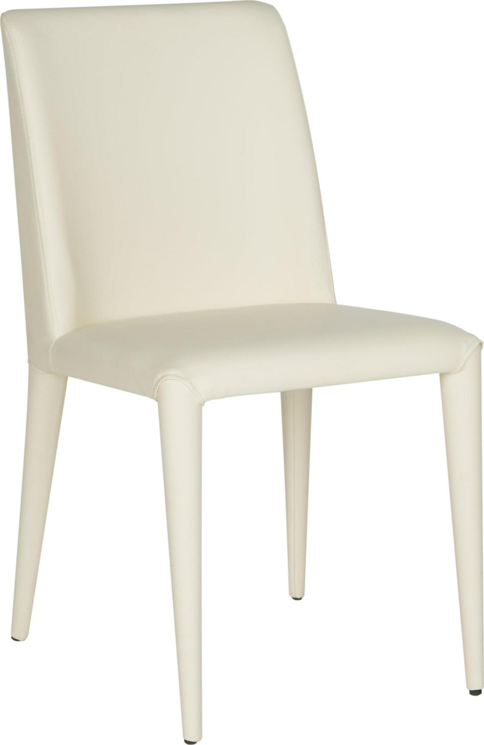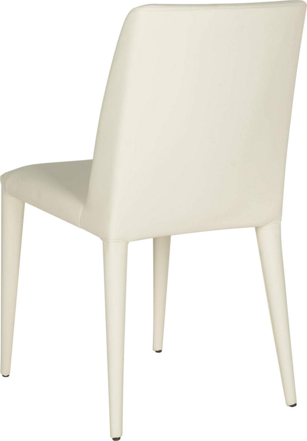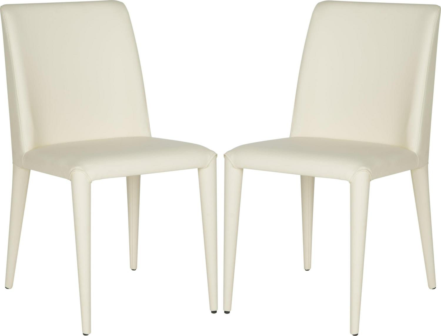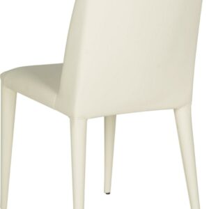 Modern elegance defines the clean-cut lines of this set of two side chairs covered in easy-care buttercream PU leather. With the tactile quality of leather and a sculpted silhouette, their look is a contemporary kitchen or dining room essential.