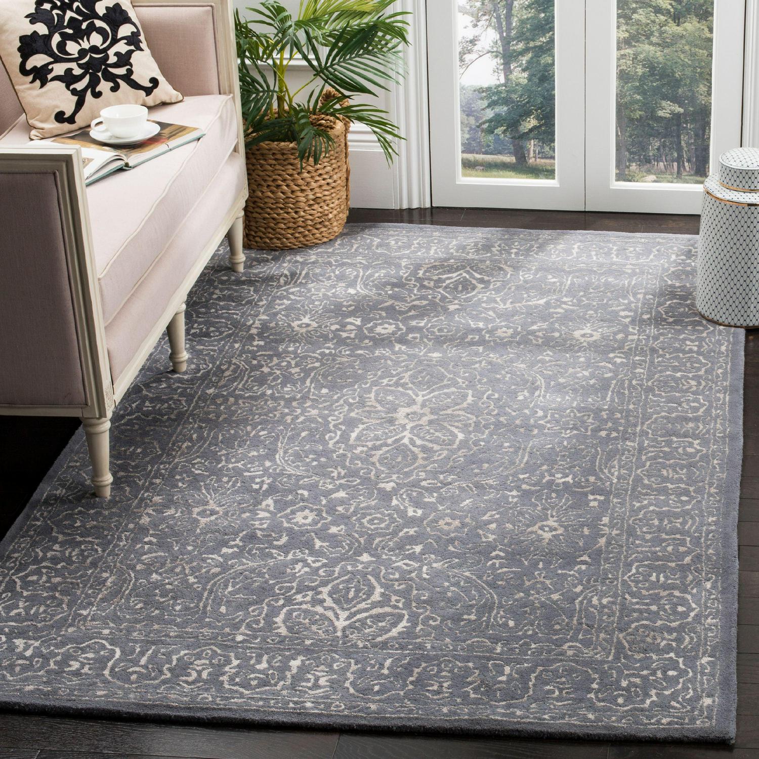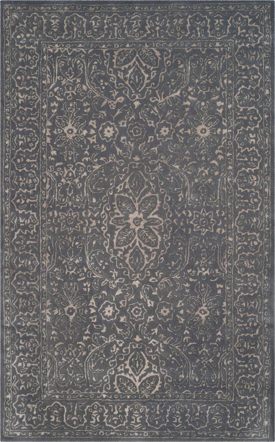 SAFAVIEH Glamour Kalisha Traditional Wool Area Rug, Steel/Blue, 5′ x 8′