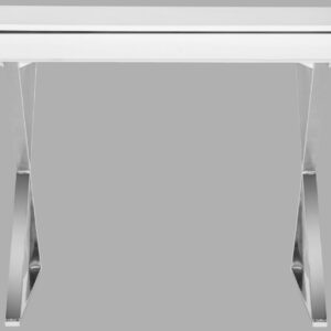 So simple, yet elegant and full of charm, the contemporary Gordon desk features x-shaped silver painted finish legs, white lacquered top, and a discreet pull-down compartment with ample room for storing a laptop, notebooks and other writing essentials.