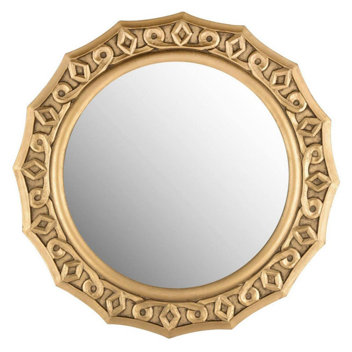 – This beautifully carved mirror is finished in a lustrous shade of gold for a refined updated look.[This delicate and demure wall adornment will enhance a living room bedroom or hall with its charm.] Disclaimer Please note that this product is hand crafted by artisans and none are exactly alike