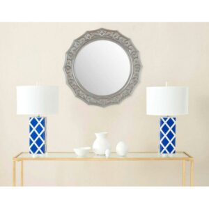 – Feminine and romantic the round Gossamer Lace mirror by Safavieh has the texture and detailing to dress up a traditional or transitional room in style