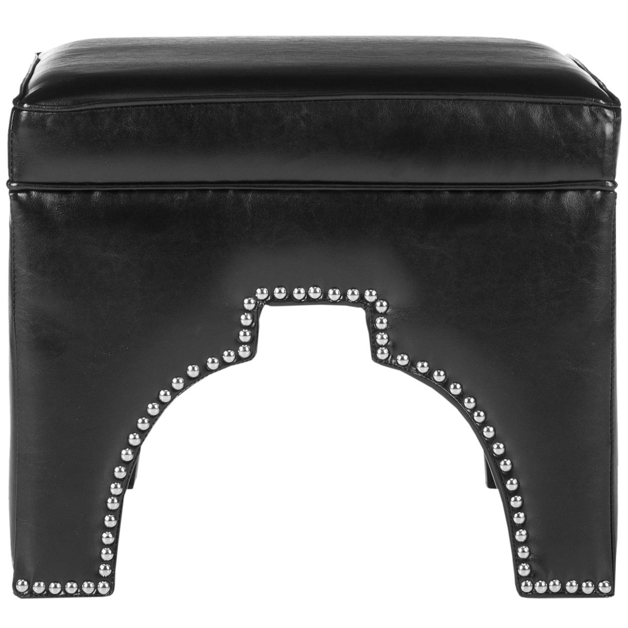 SAFAVIEH Grant Faux Leather Ottoman Silver Nail Head Black