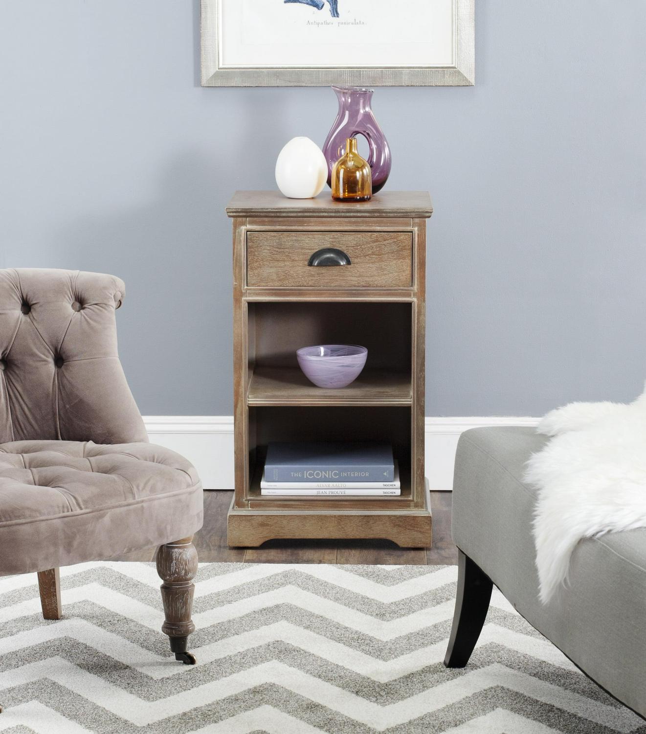 SAFAVIEH Griffin Solid Casual One Drawer Side Table, Washed Natural Pine
