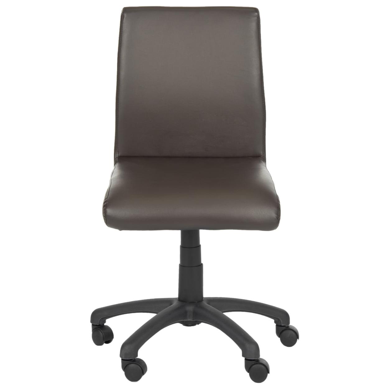 SAFAVIEH Hal Desk Chair Brown Yes, there can there be fun in functional, and this Hal Desk Chair brings any office space up to date with its clean, modern lines. Upholstered with smooth brown vegan leather, Hal’s adjustable seat and rubber wheels make 9-5 the new weekend.