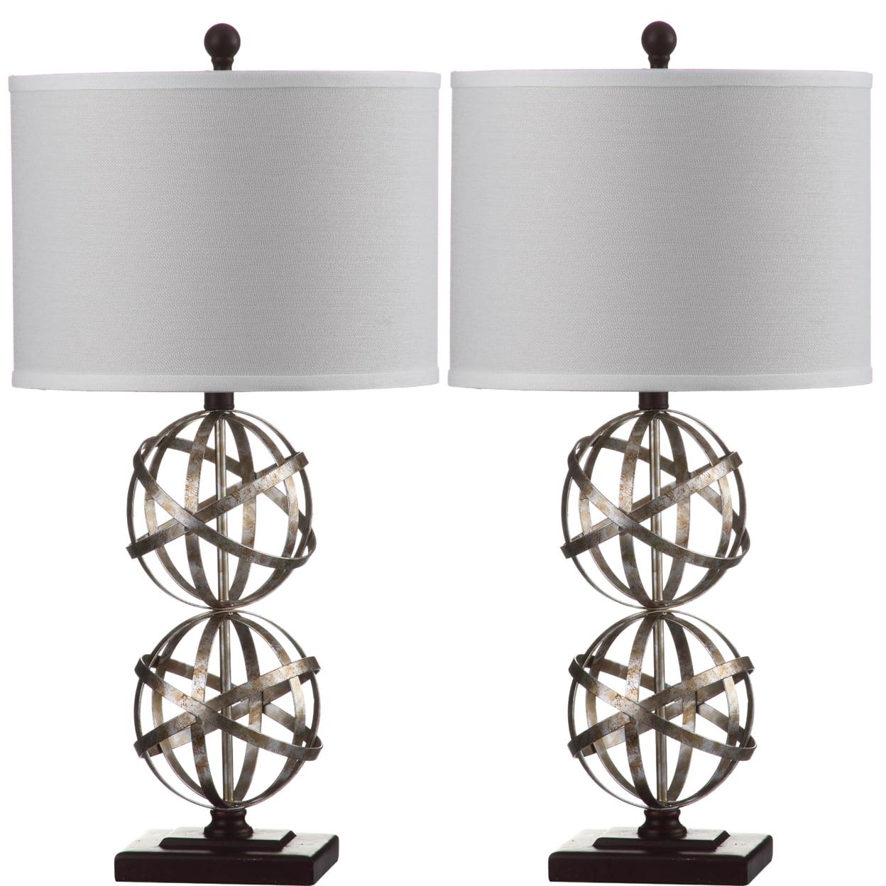 SAFAVIEH Haley Double Sphere Lamp (Set of 2) Alive with the optimism and flair that only the roaring Twenties could offer, the Haley Double Sphere table lamp adds a touch of glamor to any room. With metal bases in antique silver and white drum shades, the set of two Haley lamps exudes good taste. Begin your rug, furniture, lighting, outdoor, and home decor search and discover over 100,000 SAFAVIEH products today.