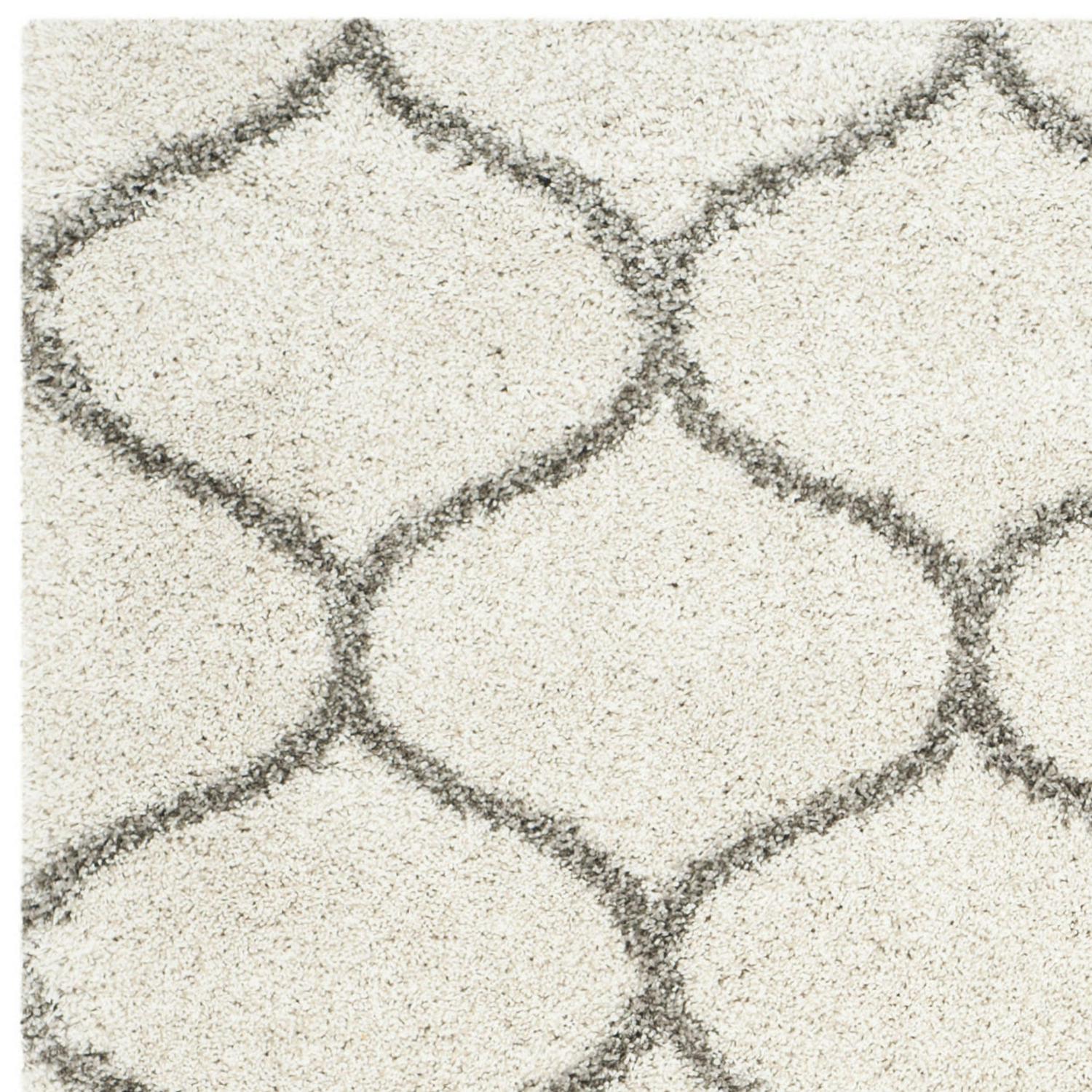 This luxurious Hudson Shag by Safavieh displays classic tile designs set in a thick, plush shag pile. Cool, onion-shaped tile patterns stretch across the lush ivory pile of this contemporary styled shag floor covering. Ideally styled to add comforting textures to urban or mod décor with durable, easy-care yarns that will stand tall even in high traffic living areas. Elegantly designed, each rug provides comfort and luxury to complement your style. Durably construction, these shag rugs are the perfect addition in your home for a chic upgrade.